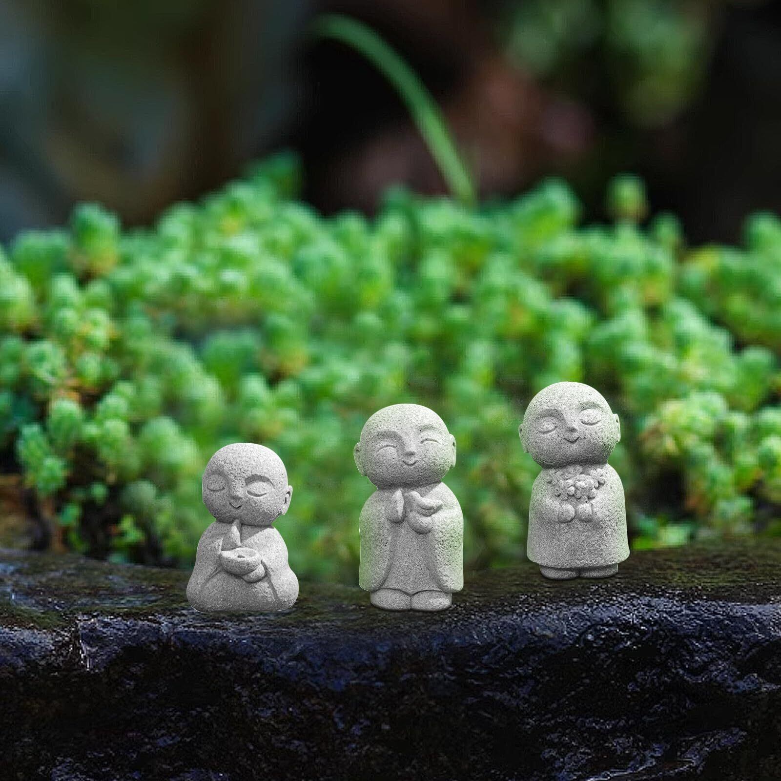 ❣️【可愛いお地蔵 セット内容】A:子供のように無邪気であるお地蔵様;B:愿いをかなうお地蔵様。C.美しい祈りのお地蔵様。手のひらサイズお地蔵様の置物3点セット。具体的なスタイル参照画像。カラー:グレーシアン