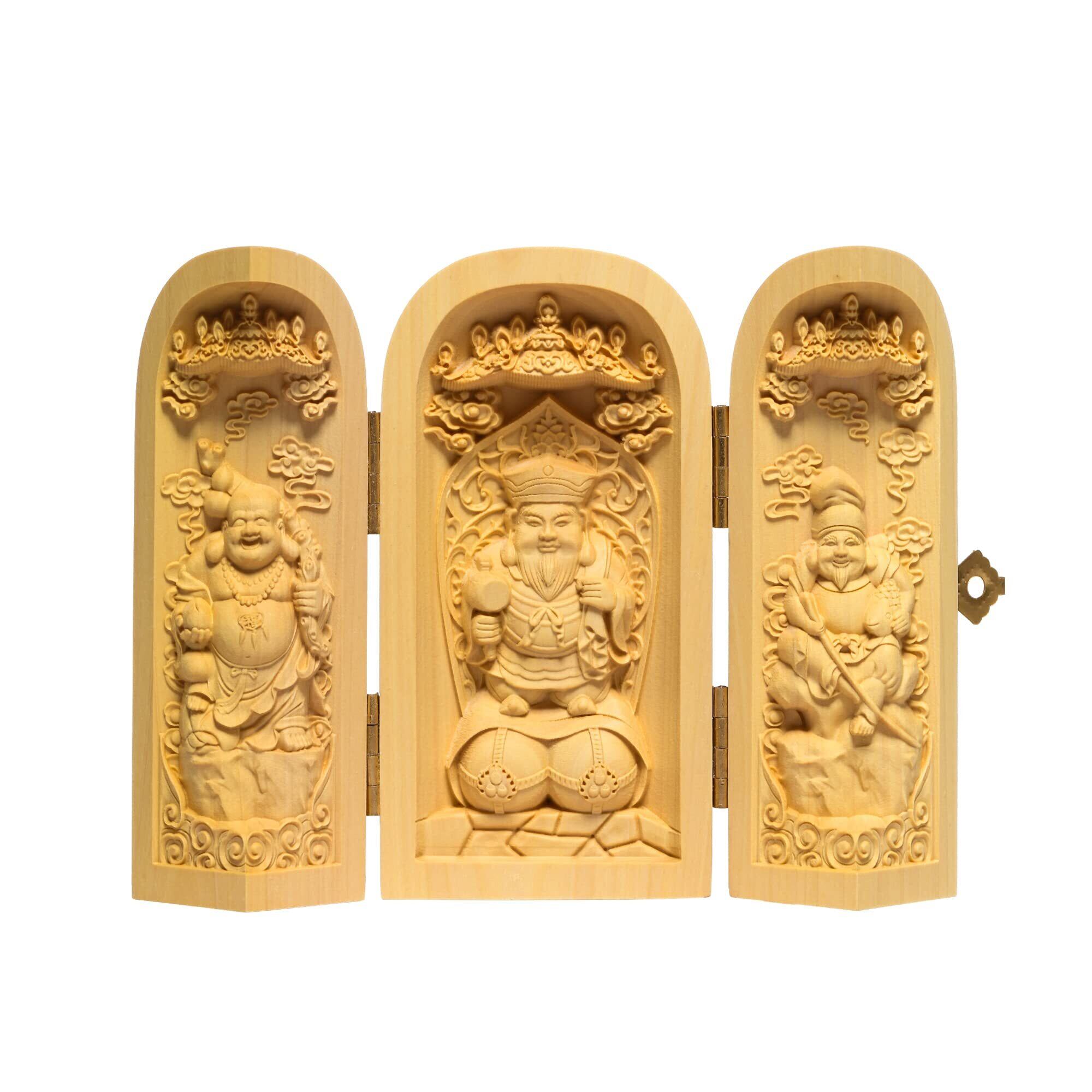 【特価セール】繁樓藝雕 仏像 大黒天 三開仏 木彫り 置物 仏壇仏像 柘植の木 祈る 厄除け