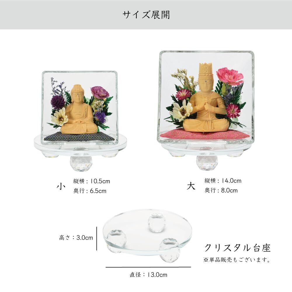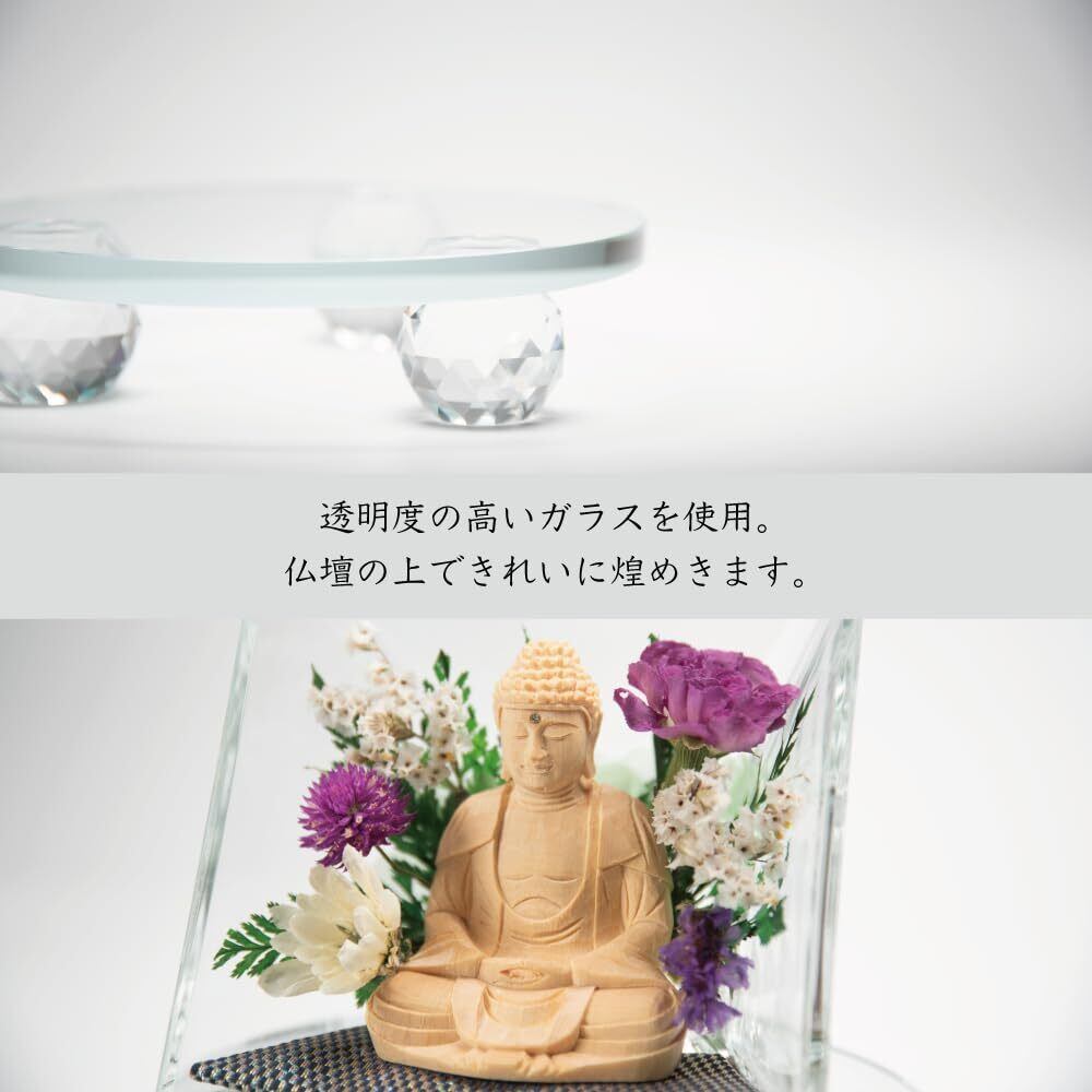 今どきのモダン仏壇、家具調のステージ仏壇などに合わせやすいクリスタル仏像です。