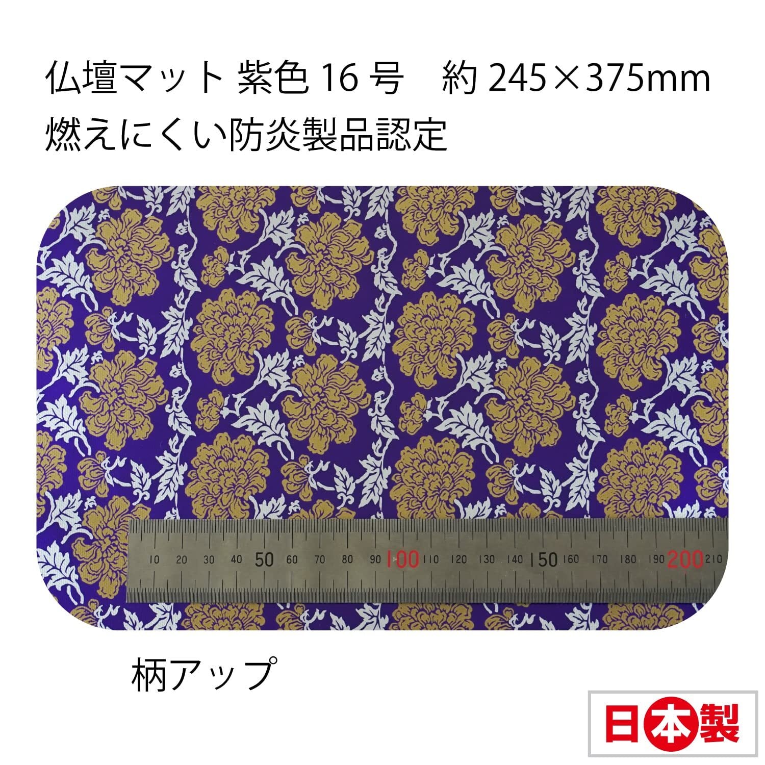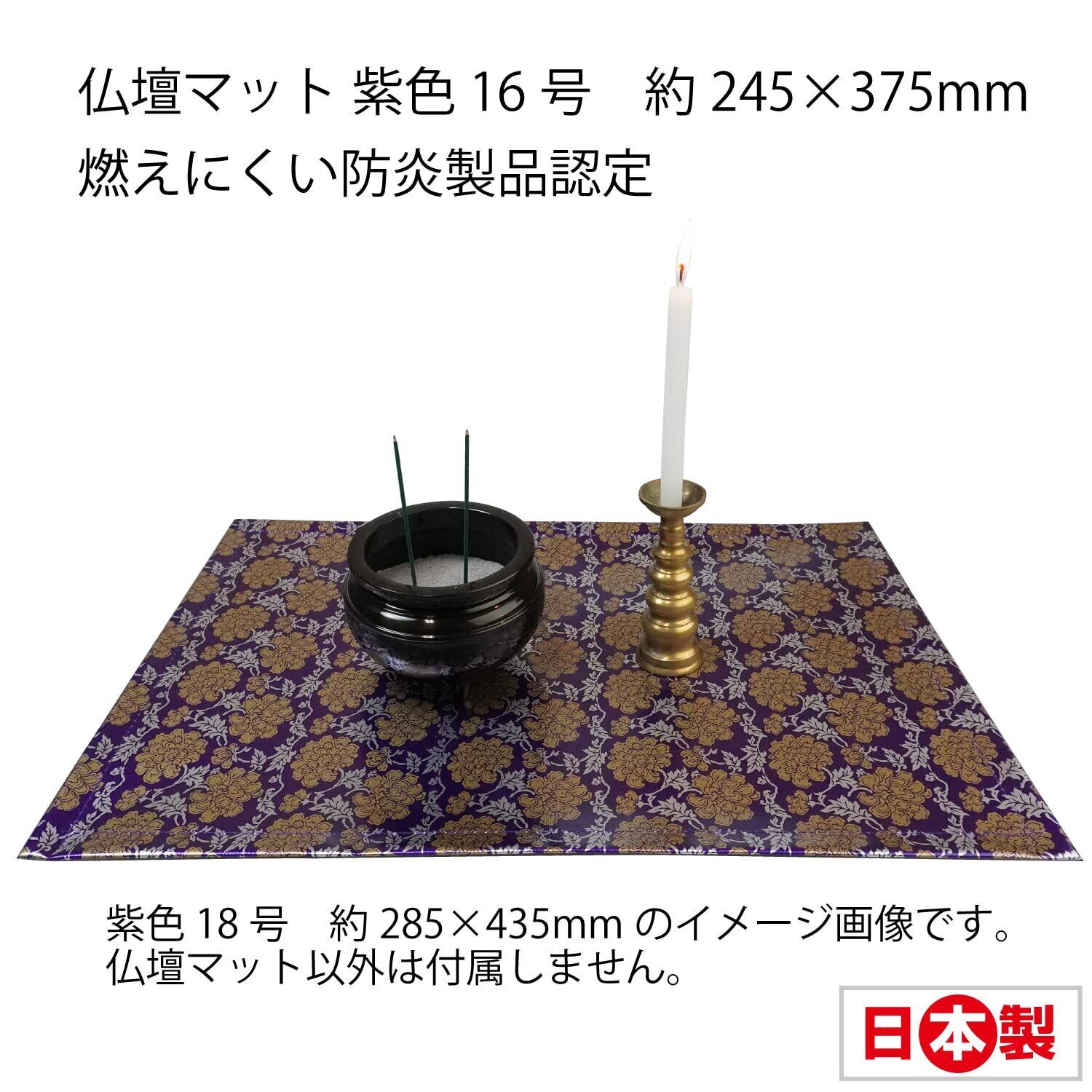 ファイン 仏壇マット 紫色 16号 約245×375mm 燃えにくい 汚れもサッとひと拭き 防炎製品認定 日本製 91472