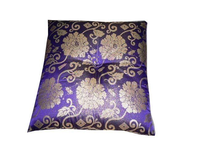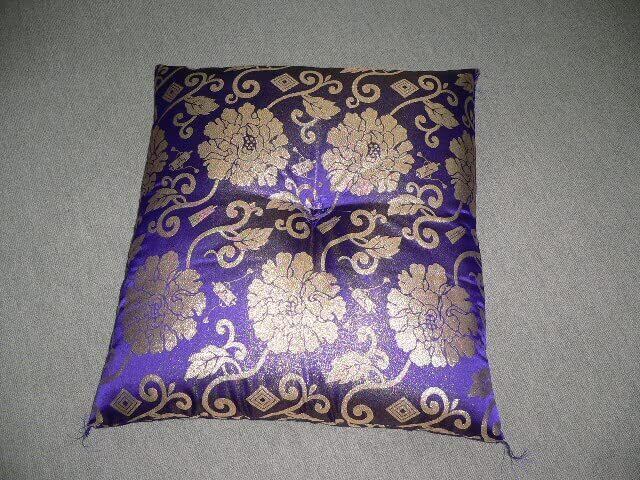 仏壇用 金ラメカラクサ紫座布団 四隅紫糸フサ付き 中央紫糸綴じ