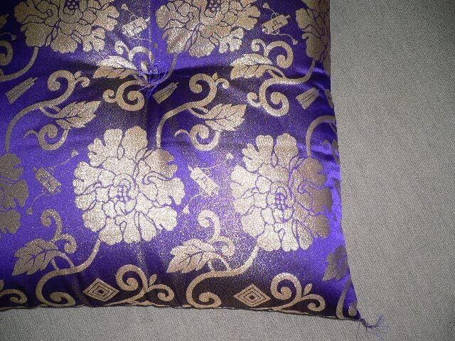 側サイズ 緞子判 (68×72cm) 法要座布団 ムラサキ地に金糸のカラクサ模様