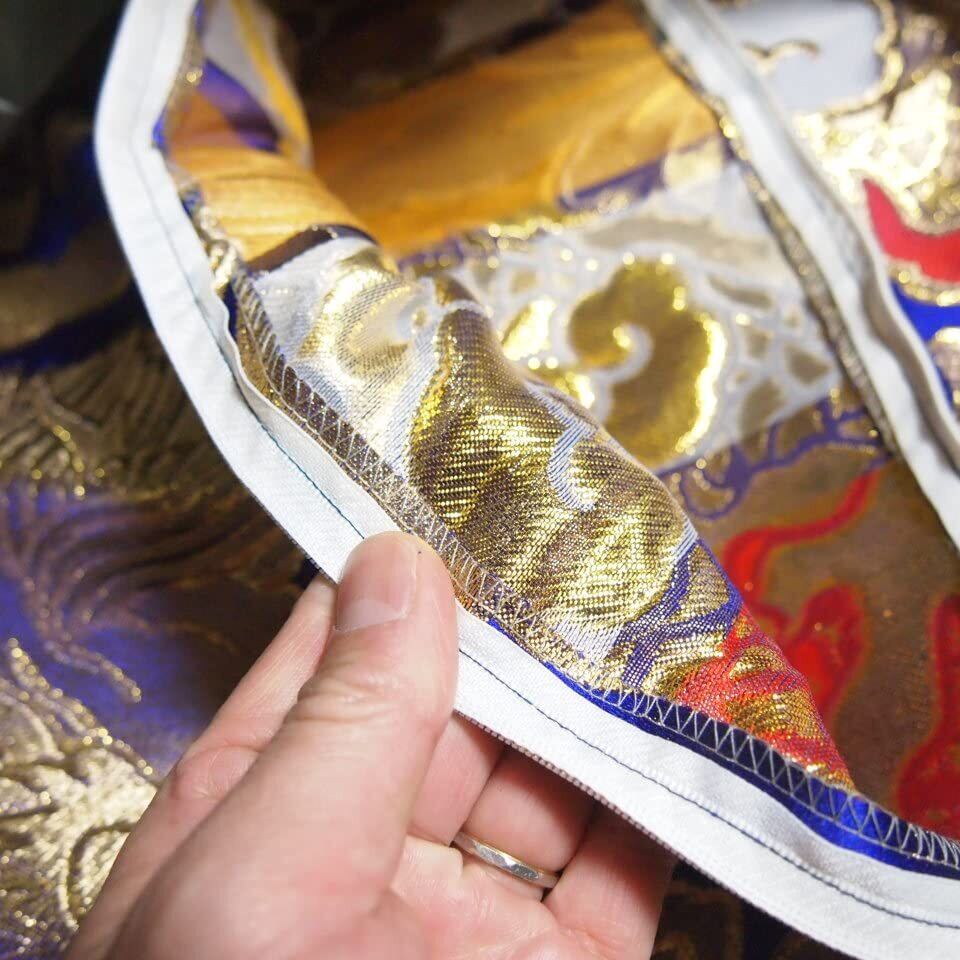 織物である為、大変高級感ありいい座布団カバーになります。織物の為、角度によって色の違いも出ます。オーダーでお寺さん用の大きな座布団も制作可能。お問い合わせください。