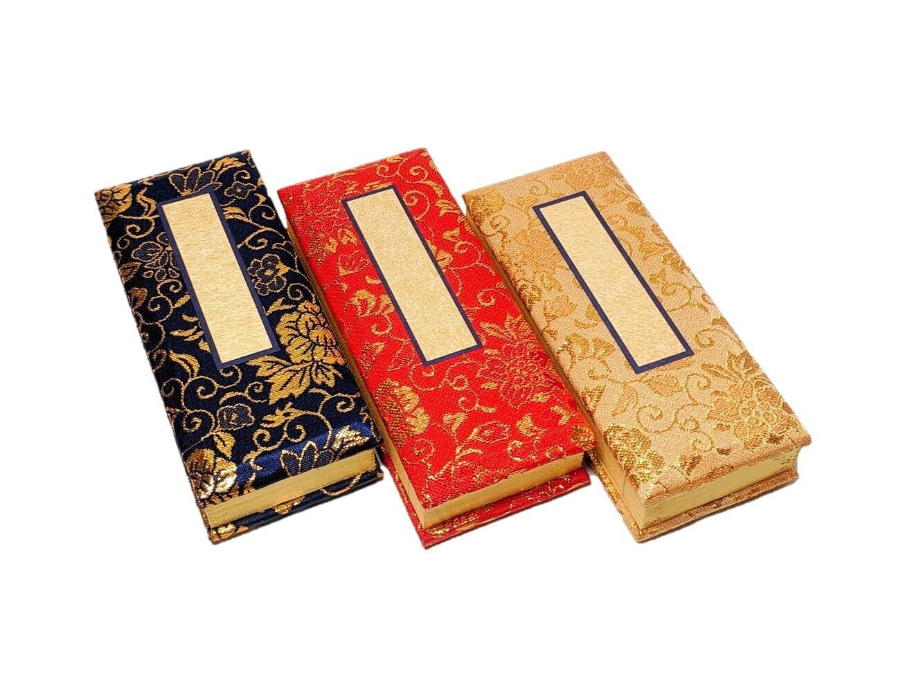 過去帳 4寸(縦 約12cm 横 約5cm) 金襴表紙、鳥の子紙、日付入り、箱入り