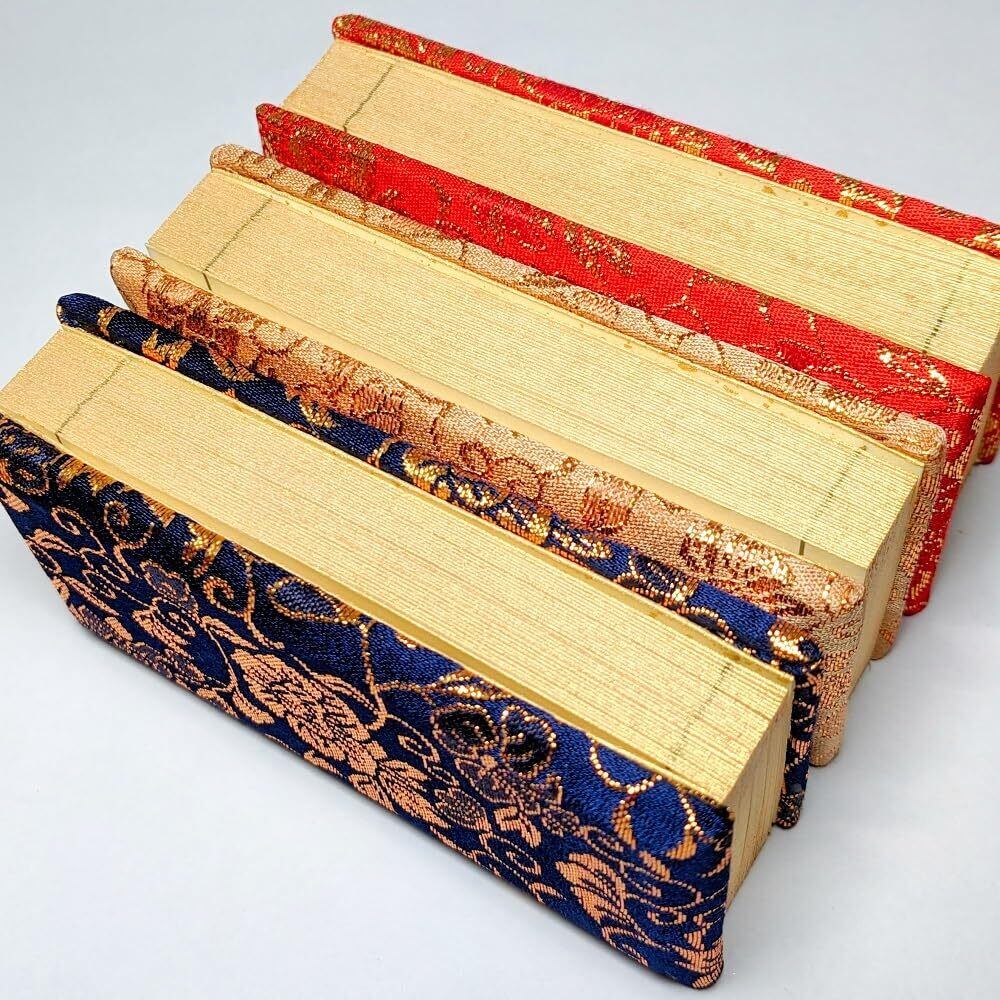過去帳 4寸(縦 約12cm 横 約5cm) 金襴 鳥の子紙 上製 日付入り (茶)