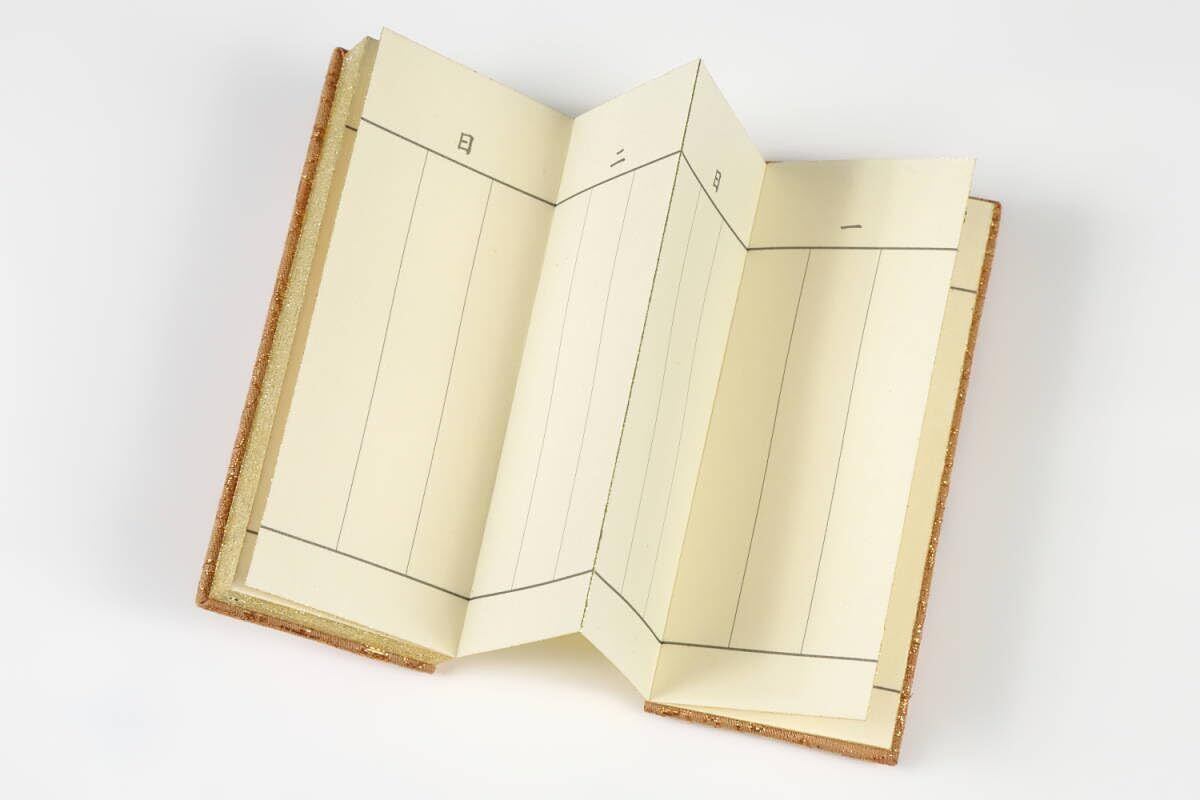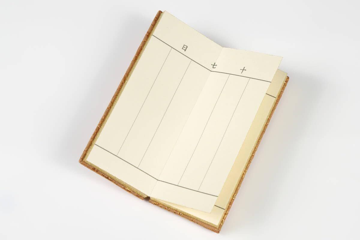 【数量限定】鎌倉こなつ( 茶 ) 鳥の子過去帳 金襴 4.0寸 日付入り ◆縦 12cm 横 5.2cm 厚み 2.7cm……