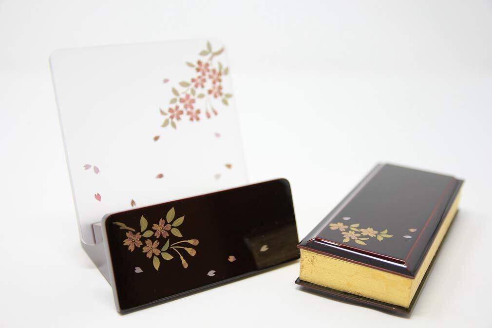 松山神仏具店 過去帳 見台(過去帳台)セット 風雅 4.0寸 会津塗 会津蒔絵 モダン 漆 桜