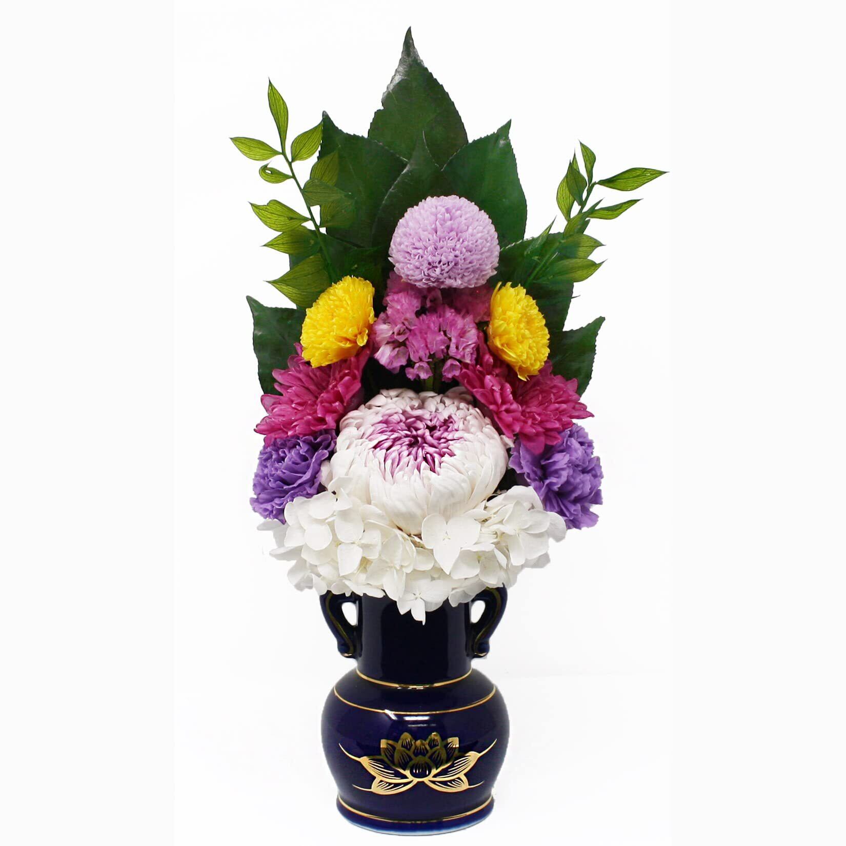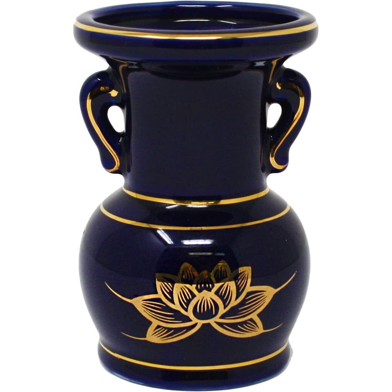 A&K 仏具 仏花立て 2点セット (一対/瑠璃金 ハス/紺) 仏壇用 花器 花瓶 お供え (直径7×高さ10.5cm) 花立て 3.5寸 陶磁器 お盆 彼岸 お悔み