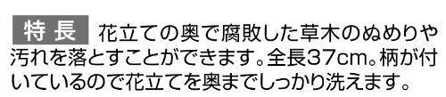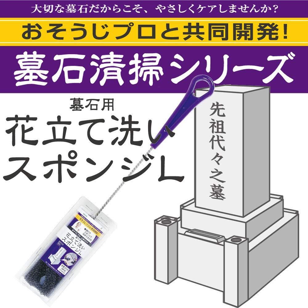 お掃除のプロと共同開発しました。大切な墓石をやさしくケアします。口がせまく、通常のスポンジでは洗うことができない「花立て」の奥まで洗えます。全長約37cmのロングタイプです。