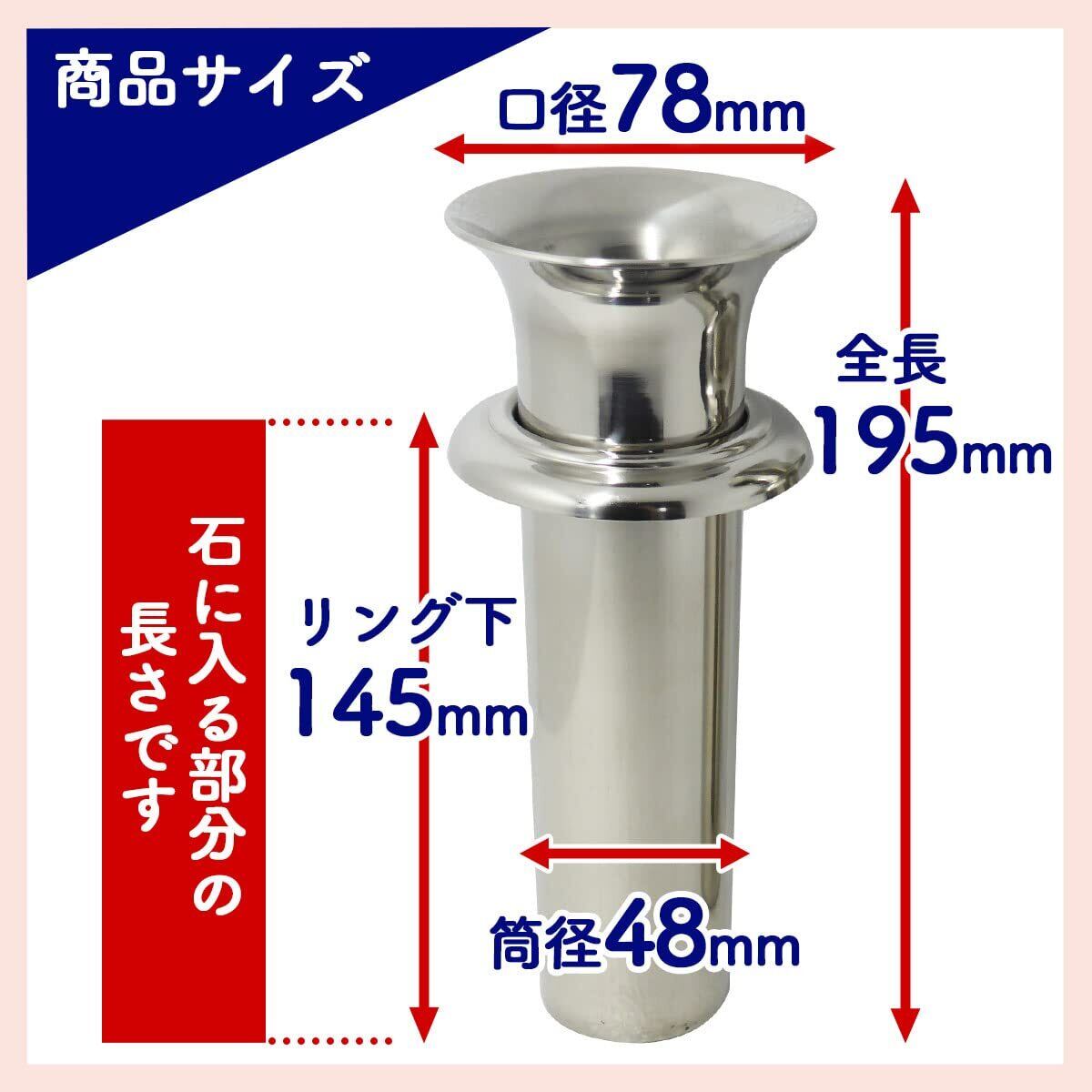 全長:195mm リング下長さ:145mm ※石に入る部分の長さです 筒径:48mm 口径:78mm