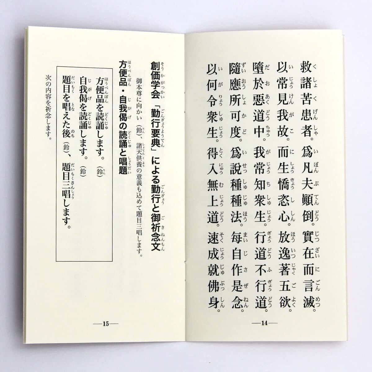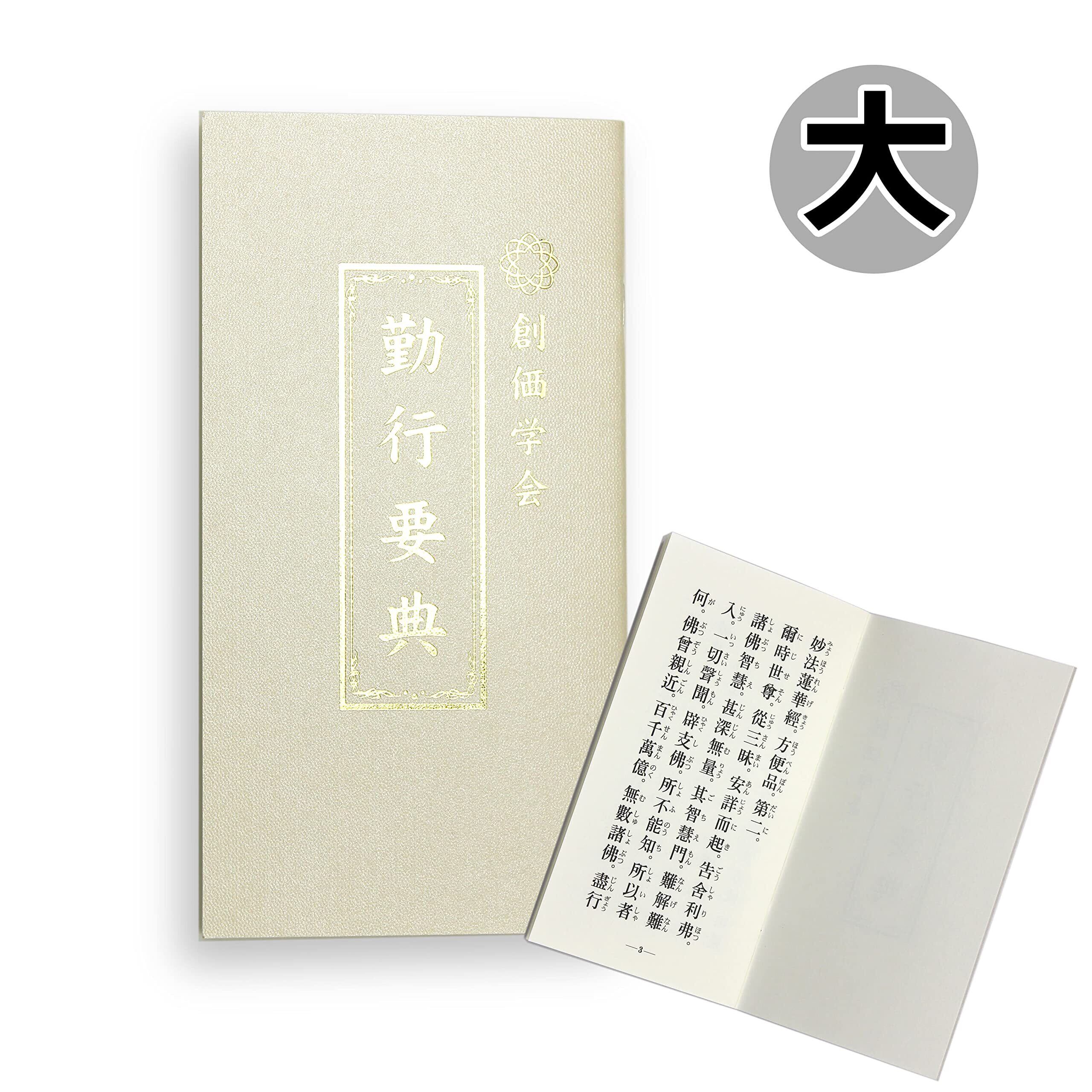 創価学会公式の勤行要典です。大きな文字で見やすい大サイズとコンパクトで携帯に便利な小サイズの経本2冊セットです。