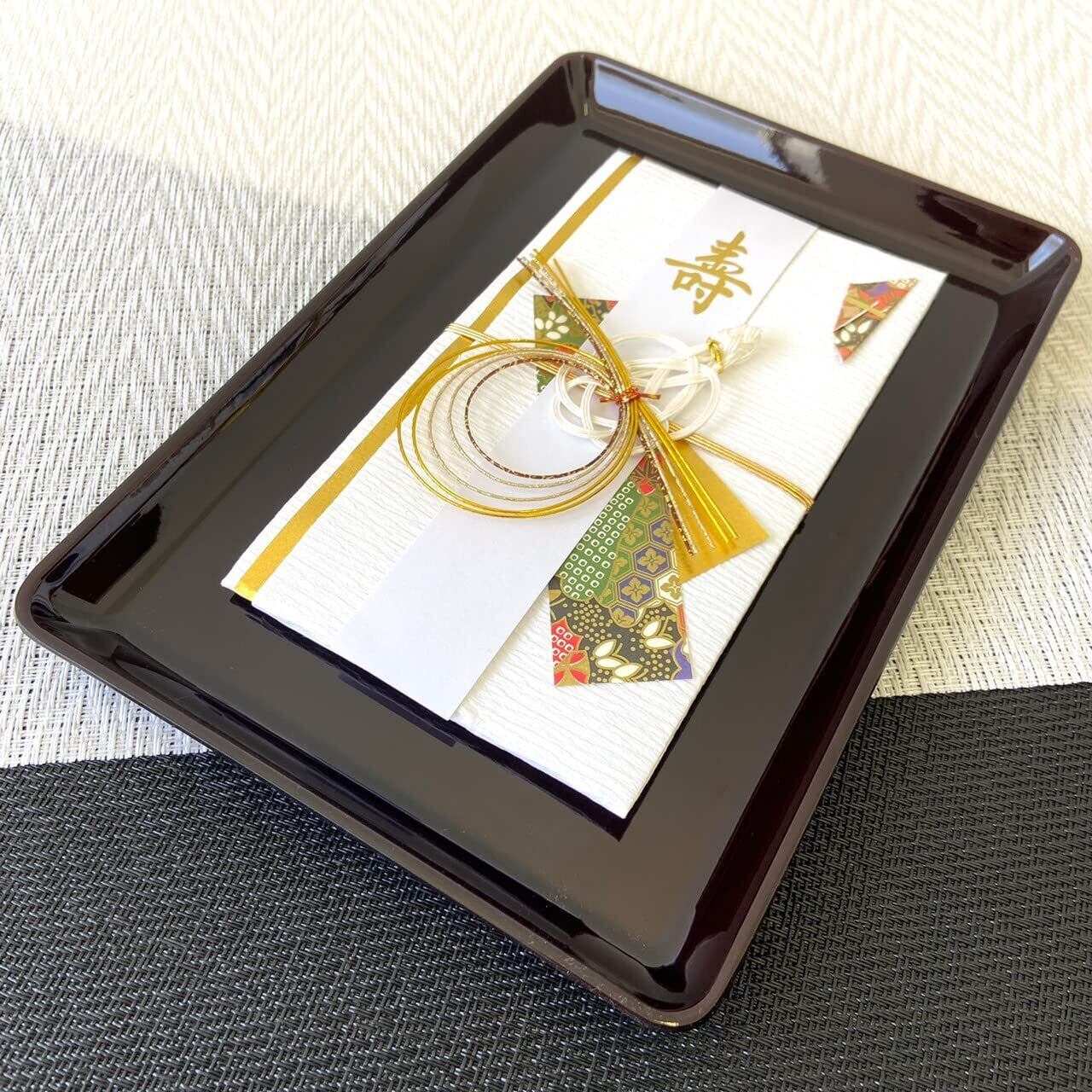 【在庫処分】8.0 PC 切手盆 溜 明月(本貝使用・貼箱入) 紀州漆器