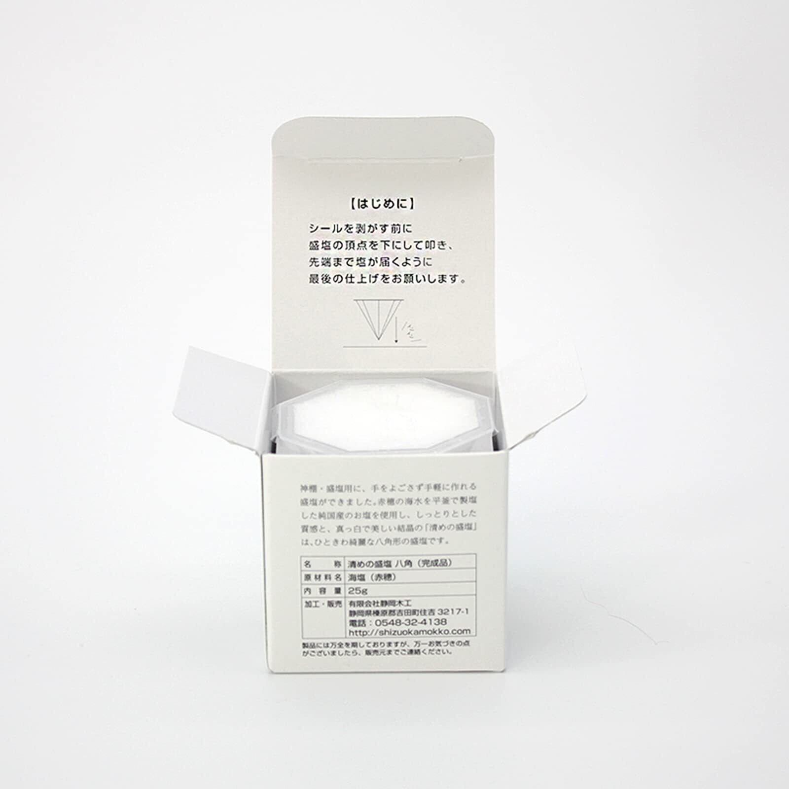 しっとりとした質感と、真っ白で美しい結晶の「清めの盛塩」は、ひときわきれいな八角形の盛塩です。