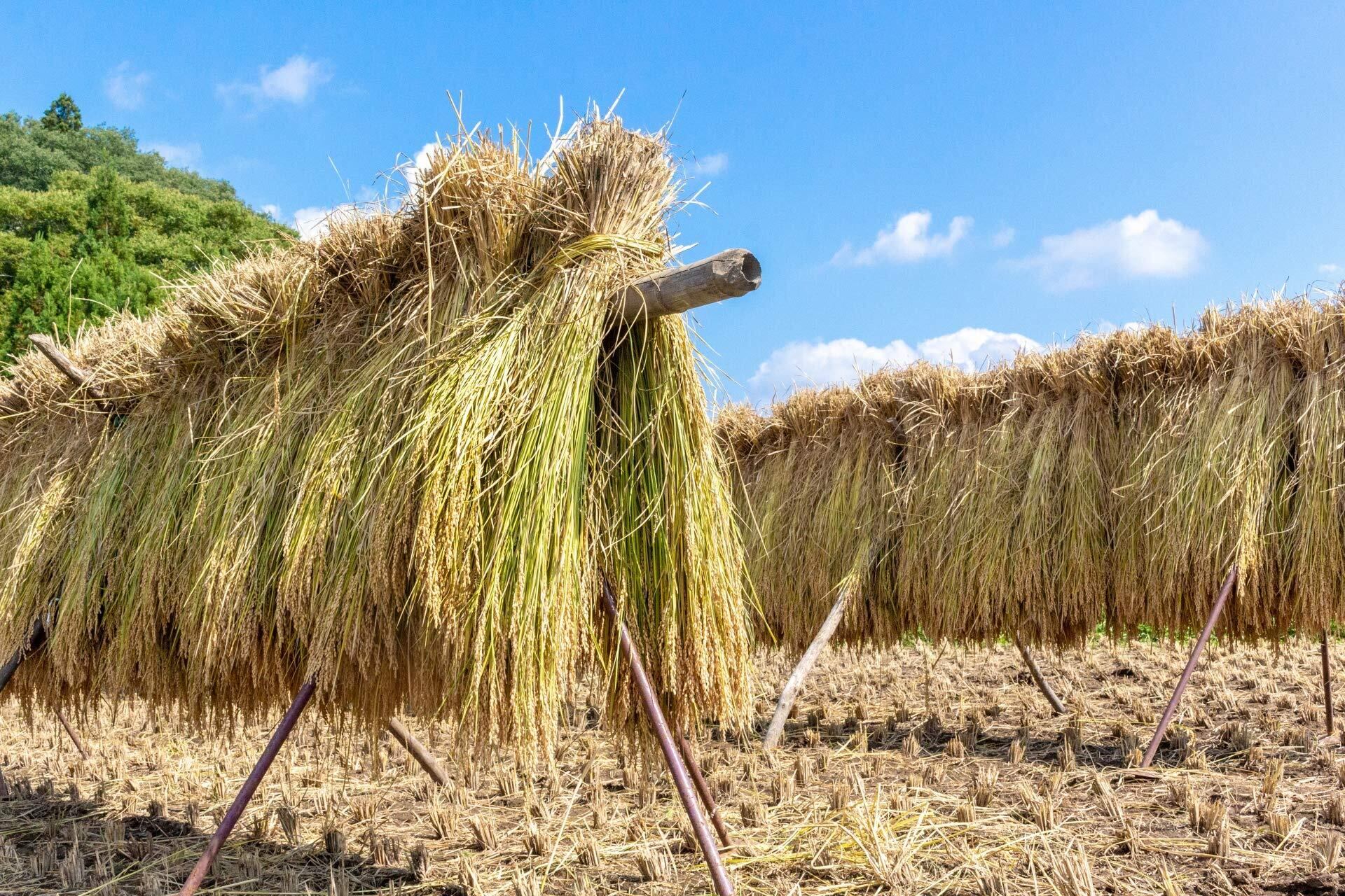 稲刈りしたままの状態で乾燥したものをお届けします。商品到着後は速やかに梱包材を外して干してください。