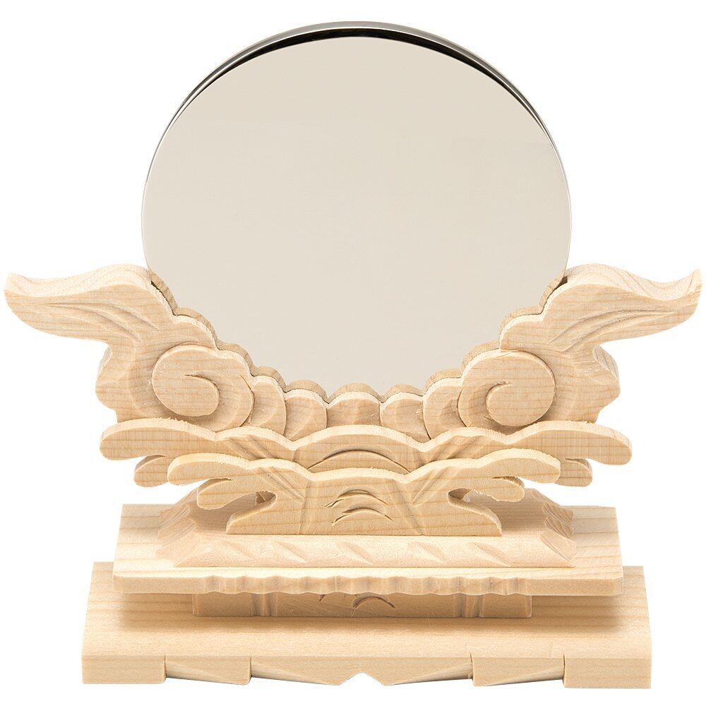 神社に安置される神鏡と同じ、金属製の「本鏡」仕様です。鋳物製でずっしりと重い、すべてを写し込む美しい曲面鏡となっております。
