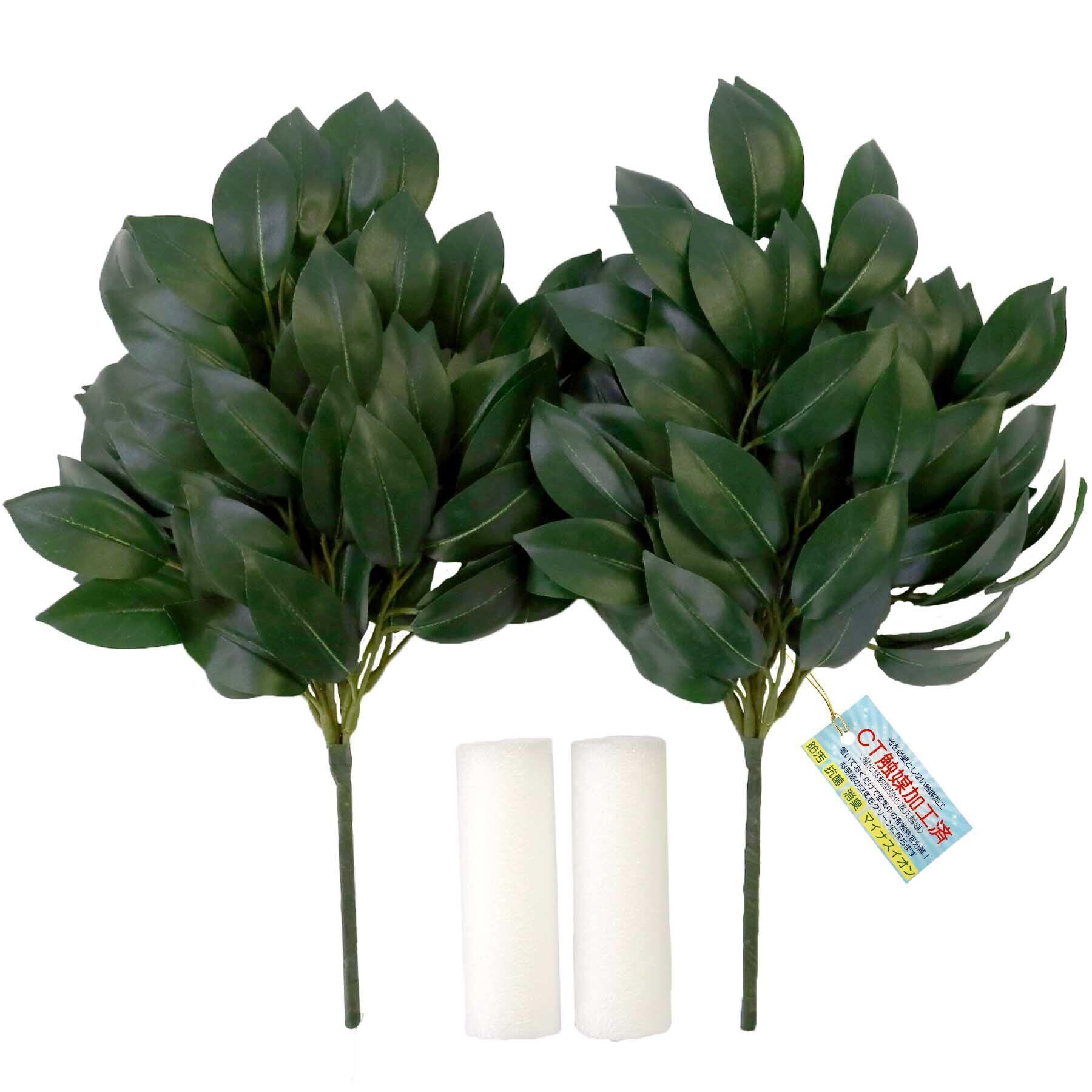 国内(埼玉県川越市 山久)でひとつひとつ、葉のふくらみを確認しながら、手で組んで作っています。 茎がフローラルテープで固定されているため、花器に引っ掛かりづらく使いやすいタイプになっております。 お榊を花器に入れた時の見栄えにこだわり、大きめの榊立てでも使用できるよう、花器固定用の円筒型スポンジをお付けしています。