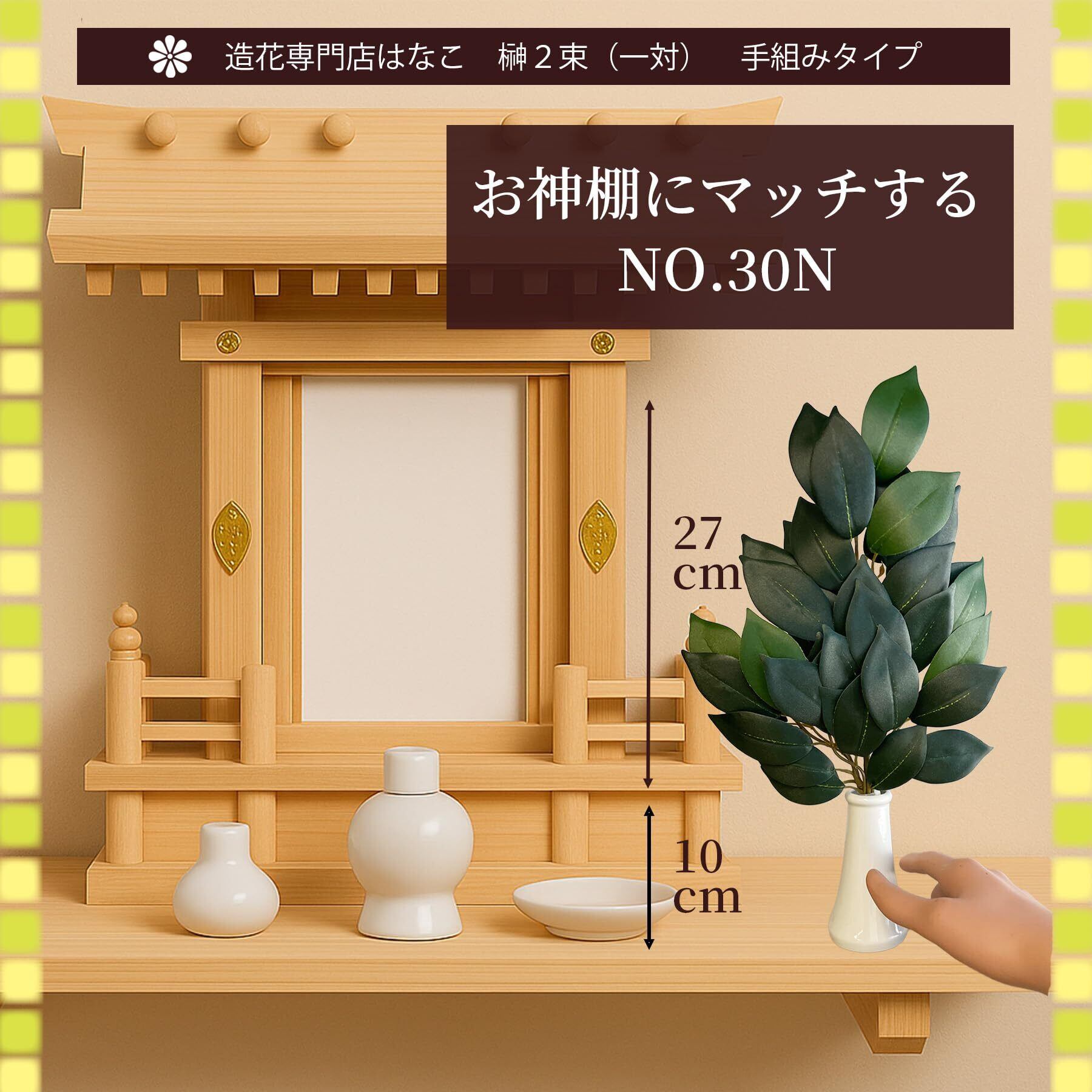 【新着商品】造花 榊 神棚用 神具 国内手組み Lサイズ 2束セット 榊2束 約36㎝(NO.30N)