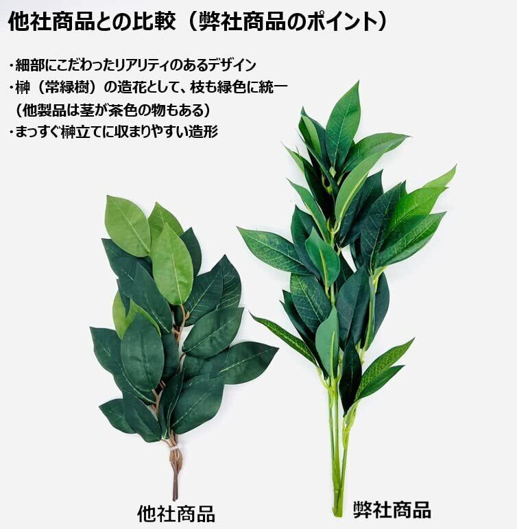 細部にこだわったリアルな造形:枝葉や葉脈などを再現し、より本物に近いリアルな造花の榊です。
