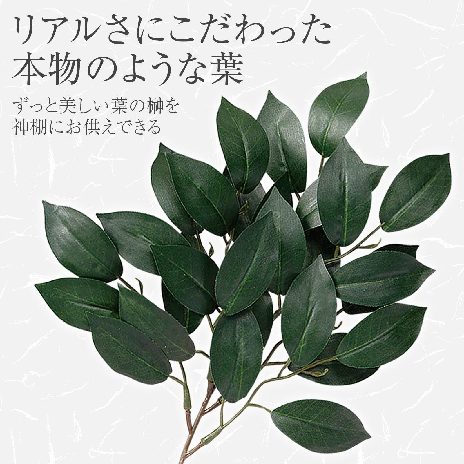 コモライフ 神棚用の榊 (2束) さかき 造花 神具 全長34cm お供え ワイヤー入り 高さ調節可 枯れない リアル