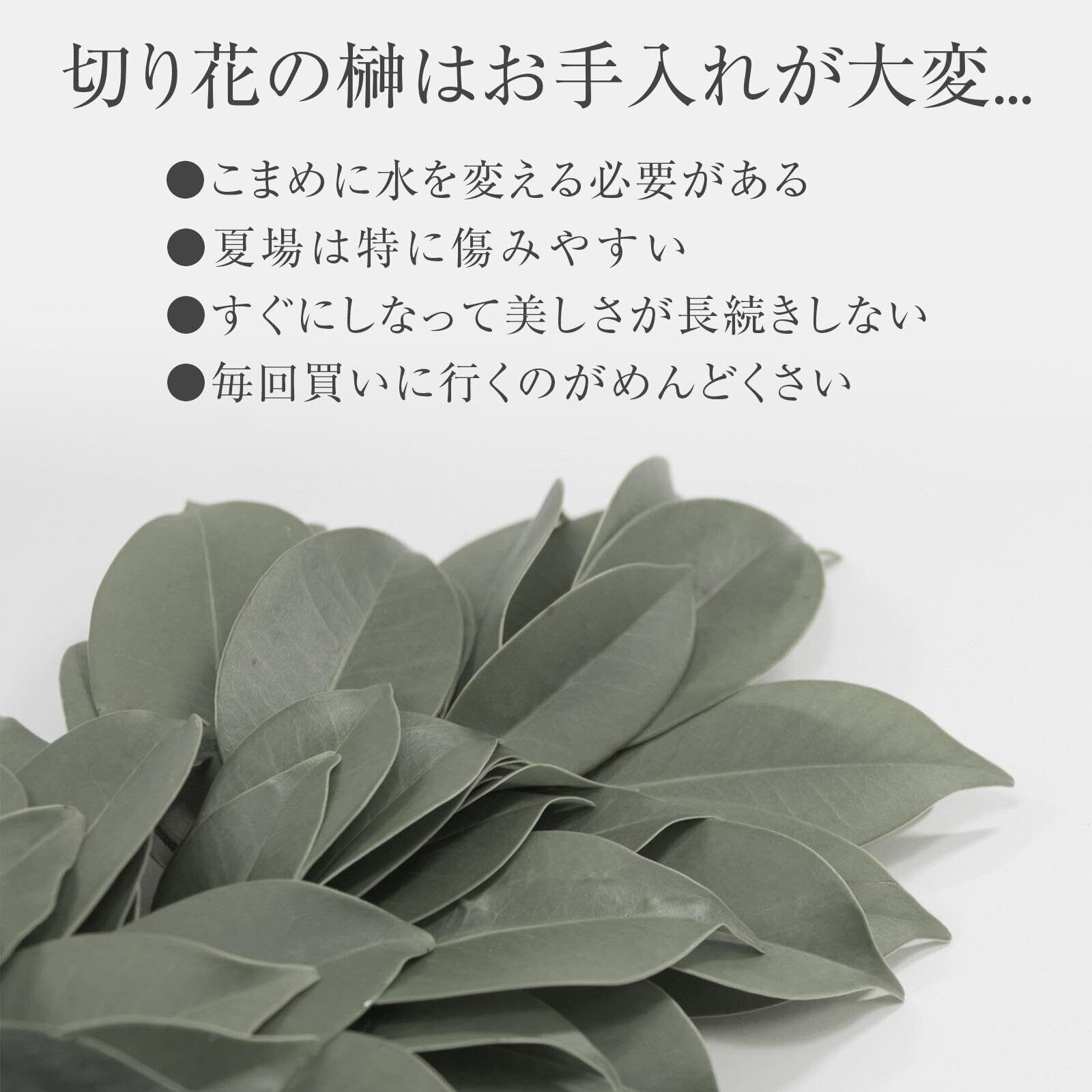 造花だから枯れずに美しさ長続き!葉のリアルさにこだわったデザインで、ワイヤー入りの茎を曲げて高さ調節可能。