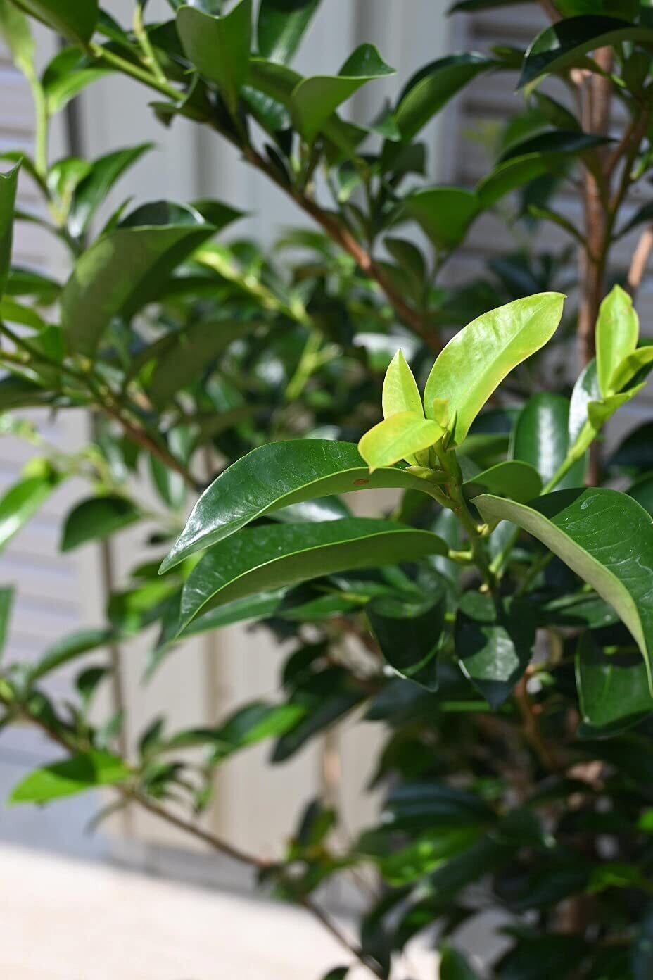 神棚のお祀りに欠かすことのできない榊(さかき) 木に神と書いて榊、というほど榊は神道において神と深い関わりのある神聖な植物になります。 古来より日本では、植物や先端が尖ったものには、神様の力が宿ると考えられていました。 榊は神様が降り立つ依り代としての役割もあるようで 常に生い茂って葉が落ちることがないため「栄える木」もしくは、 「神様と人の境にある木」という意味の言葉から転じたなど、その語源には諸説あります。 自宅で榊を育てて 神棚に お供えするのを 楽しみに 育ててみてはいかがですか