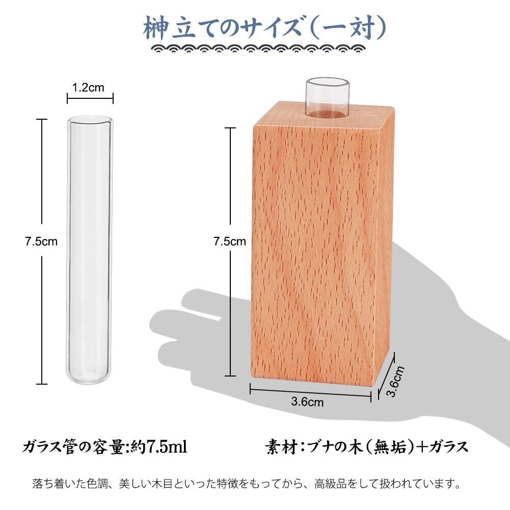 【サイズ】榊立て本体:高さ7.5cm×3.6センチ(ブナの木); ガラス管:高さ7.5cm直径1.2cm(ガラス)お届け時に箱から出してすぐにお祀り頂ける完成品。(※写真にイメージで榊などの付属はありません)