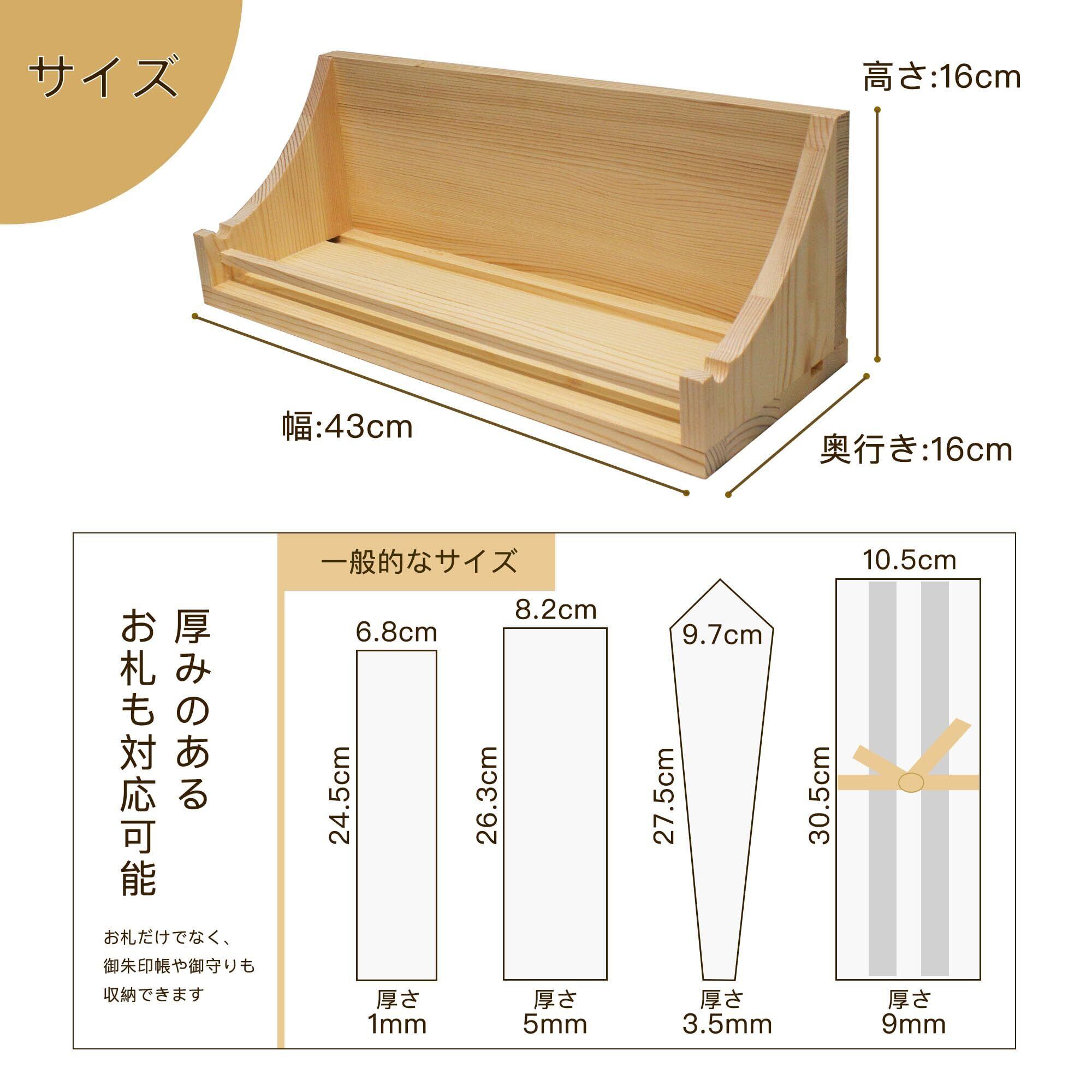 御札のサイズは幅約23×奥行き 10× 厚み3cm.高品質の天然赤松を使用しており、これらは耐久性に優れており、美しい外観を持ちます。伝統と現代のデザインを融合させ、簡潔な外観をしており、場所を問わず洋室にも和室にも職場にも、生活空間に溶け込むことができます.