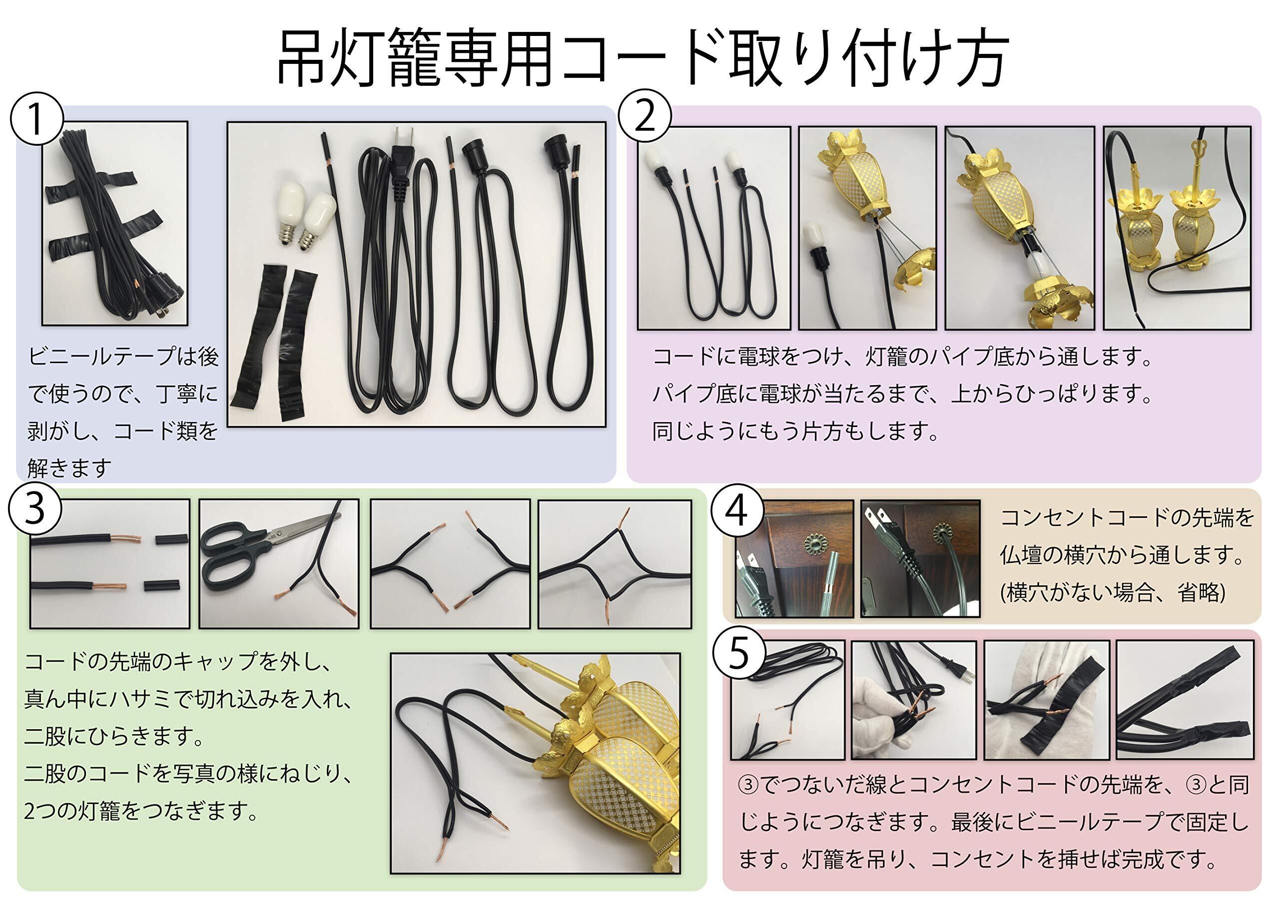 現在流通しているお仏壇用の灯籠には、ほとんど適合しますが、一部利用できないものもあります。お仏壇からコンセントまでのコードが約2.0メートルなので、届かない場合は延長コード等をご利用ください。