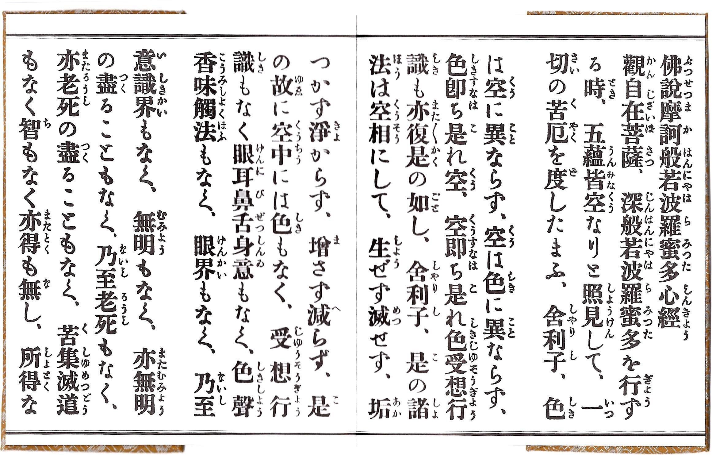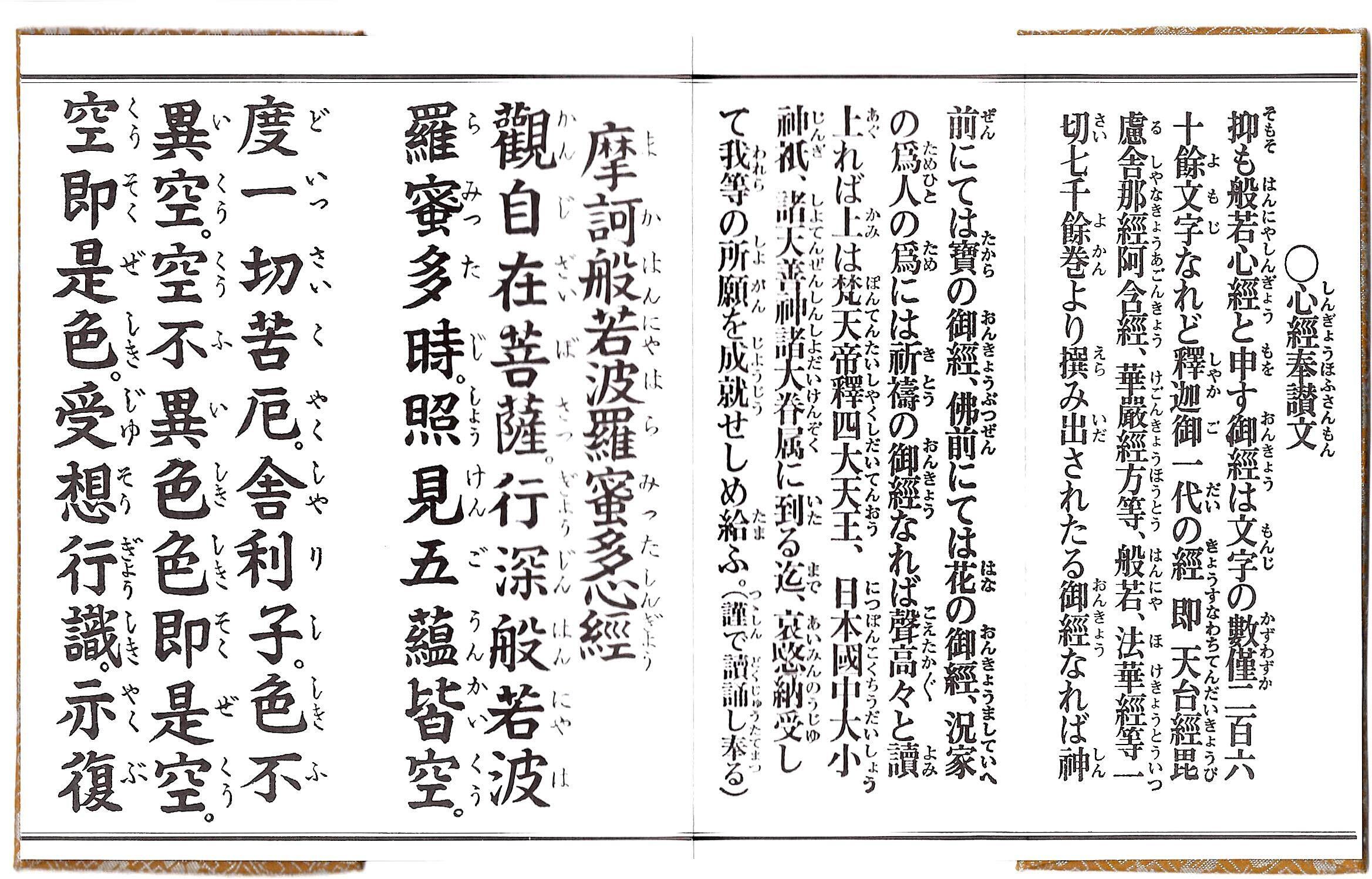 【新春セール】経本 大字 般若心経 訓読付き 緞子厚台紙 芥子(からし)色