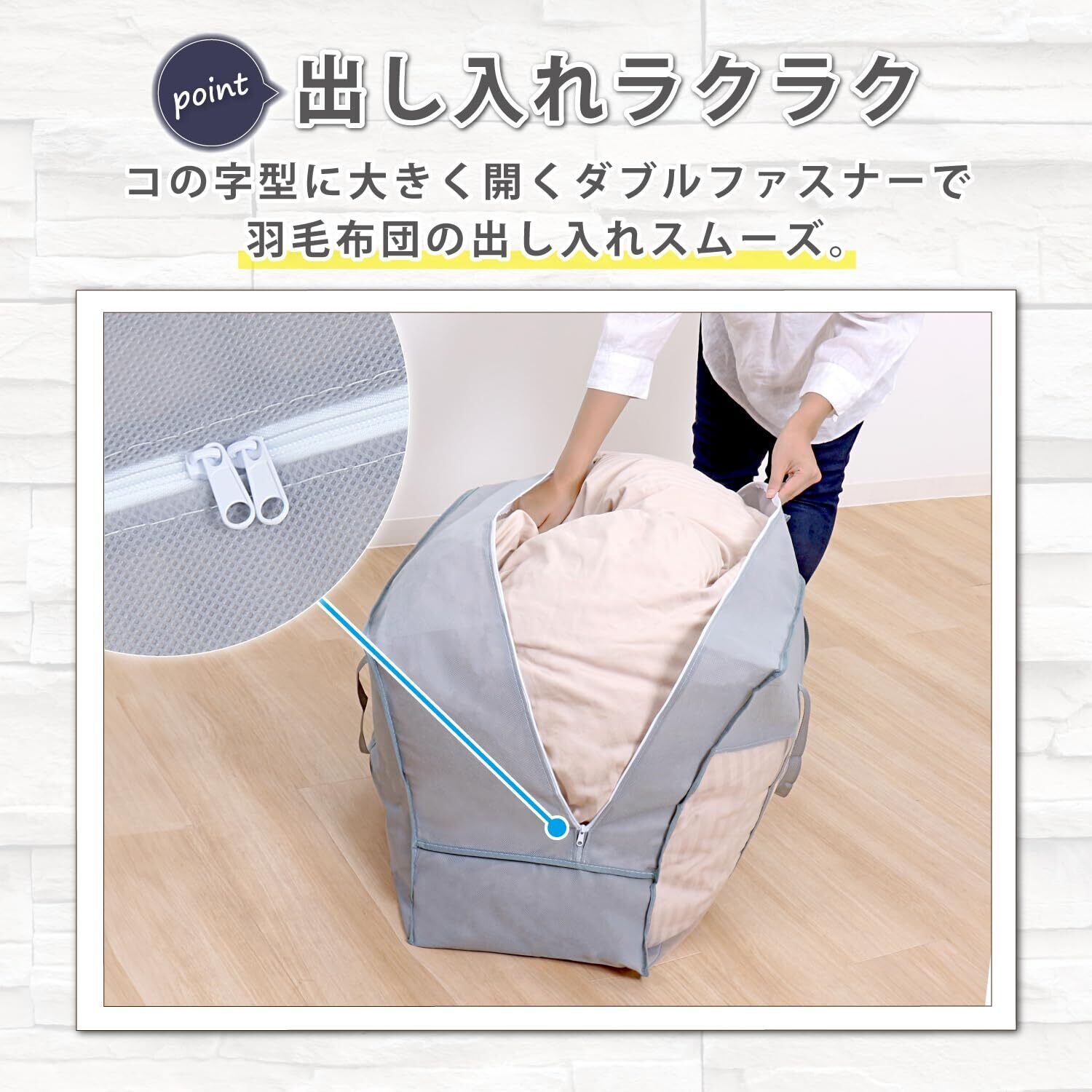 アストロ 羽毛布団収納袋 グレー シングル ダブル兼用 通気性の良い不織布製 布団収納 布団袋 収納バッグ 収納ケース 保管袋 ホコリ除け 持ち手付き 透明窓付き 圧縮袋 コンパクト 167-04
