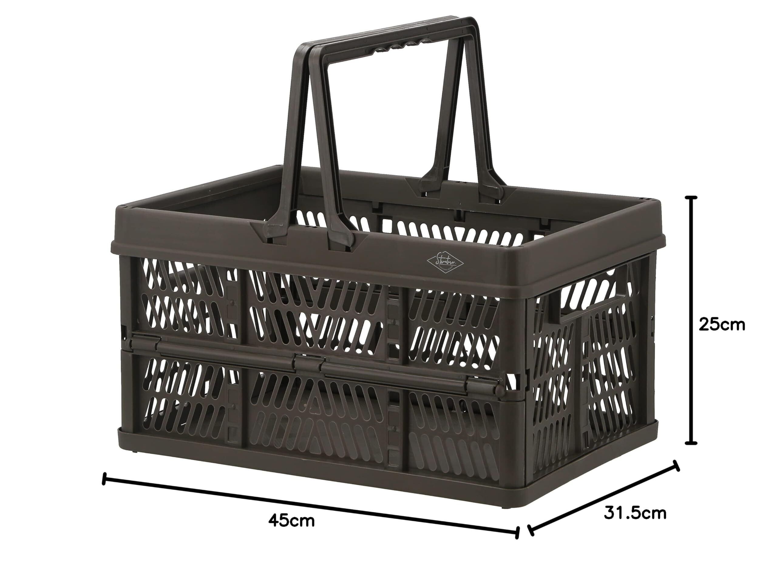 不二貿易(Fujiboeki) 折りたたみ コンテナ かご 幅45×奥行31.5×高さ25㎝ カーキ 取っ手付き 持ち運び簡単 内容量26L Lサイズ 86449
