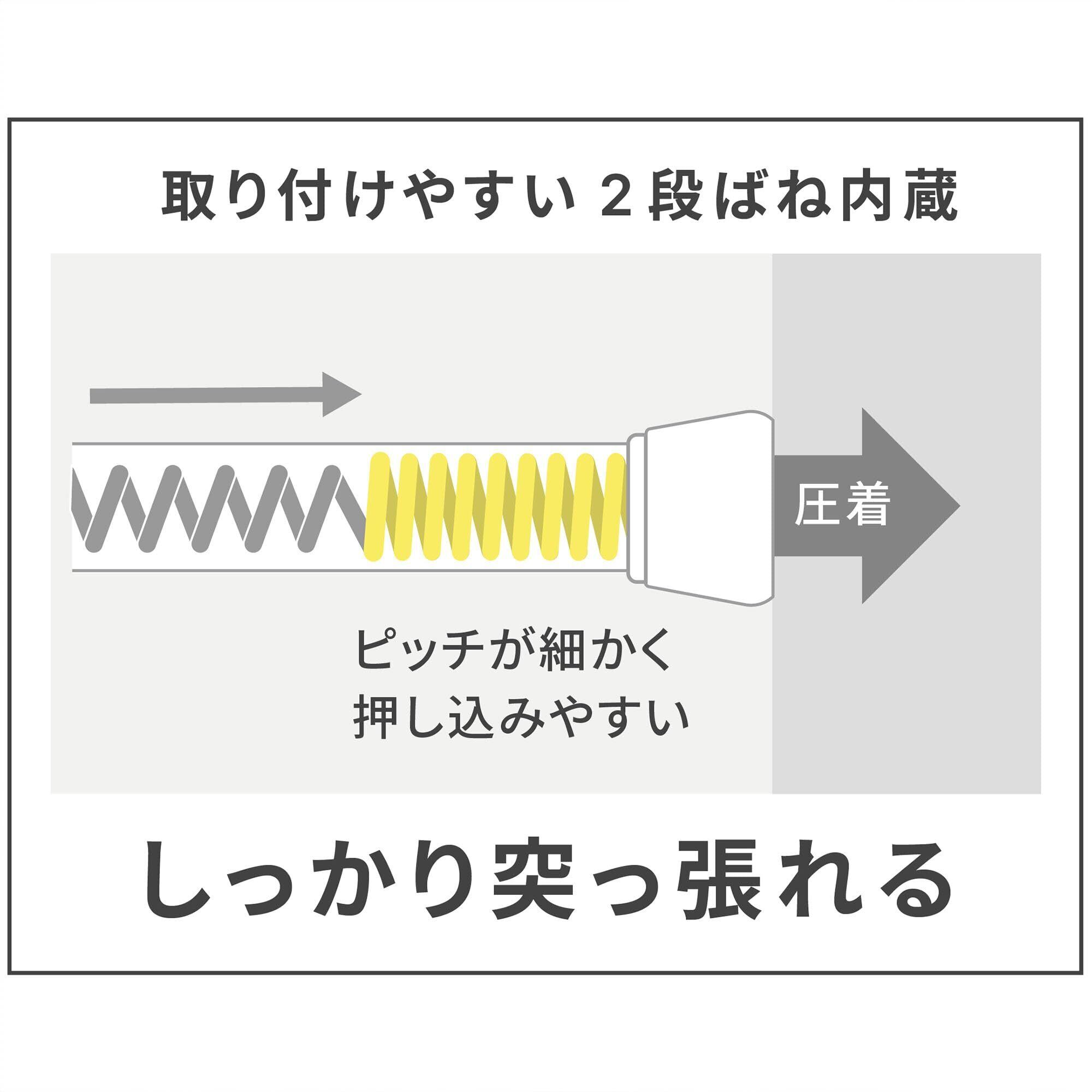 二段ばね式で取り付けやすく、しっかり固定できる。両端のキャップは取り外し可能。