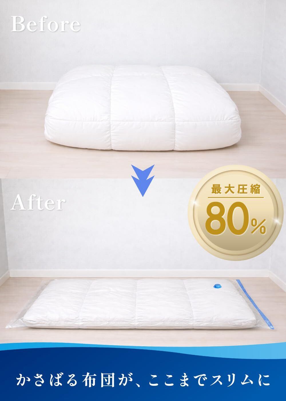 【在庫処分】布団圧縮袋 布団 衣類 圧縮袋 大容量 繰り返し使える 省スペース ふとん収納袋 (布団サイズ, 掃除機タイプ)