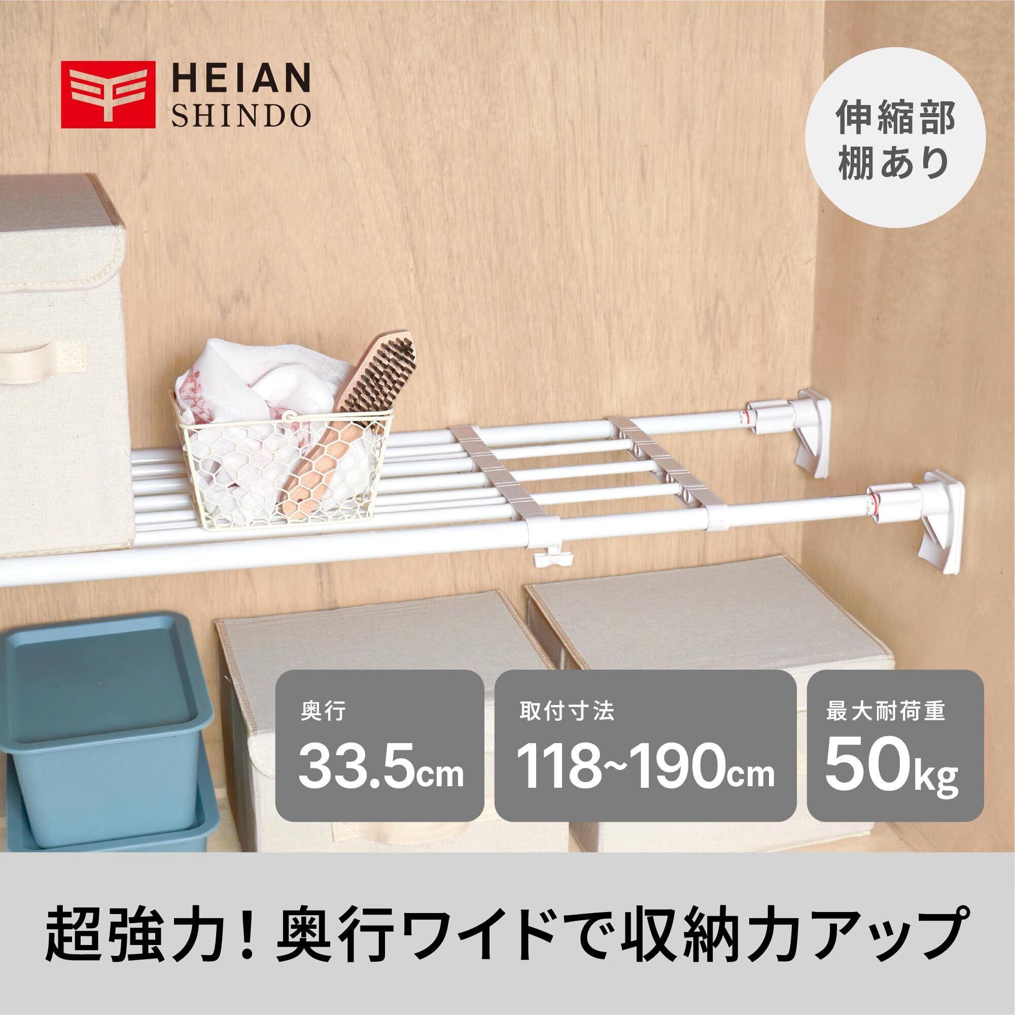 【特価商品】平安伸銅工業 HEIAN SHINDO つっぱり棚 超強力ワイド ホワイト 取付幅118~190cm 耐荷重50-20kg RA-12