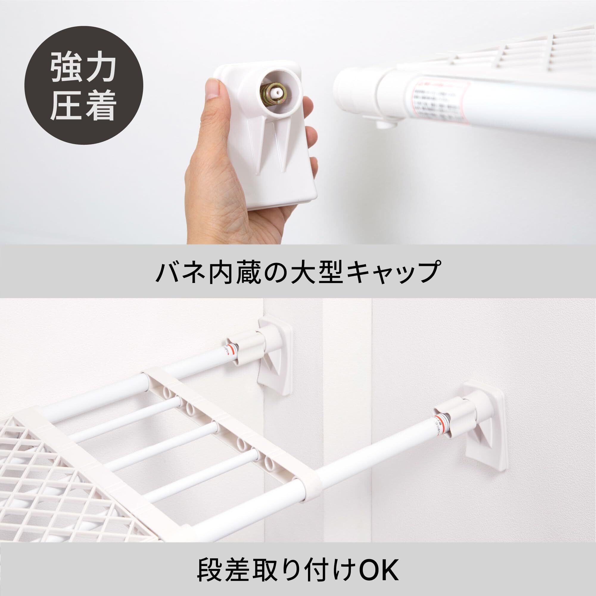 ●壁面を強力につっぱって取り付けますので、取り付け跡が残る場合があります。支障の無い所で使用してください。