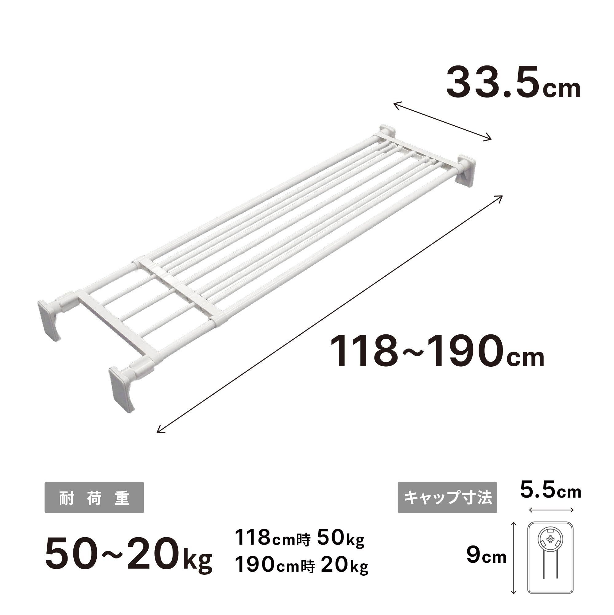 【サイズ】幅118~190×高8.8×奥行33.3(棚部奥行30.5)cm【取付幅】118~190cm