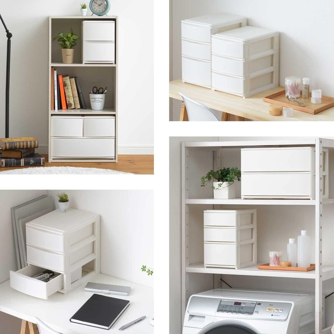 サンカ ポスデコ カラーボックスにピッタリフィット 引き出し収納ボックス ハーフ 深2段 ホワイト ずれを防ぐラバーストッパー 重ねて使える ロック機構 日本製 収納ケース 小物 衣装 (幅19.5x奥行26.5x高さ26.5cm) NpdA5-f2WH
