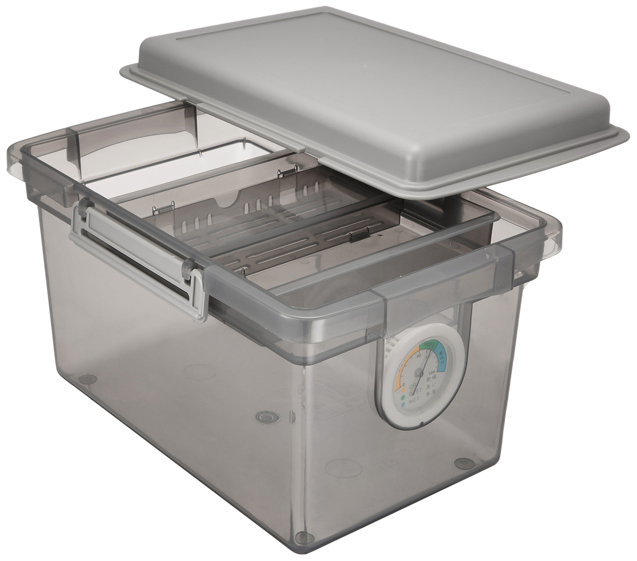 ●湿気シャットアウト。フタの周囲は発泡ポリエチレンやシリコンゴムを使った密閉方式。乾燥状態が一目で分かる湿度計と乾燥剤付き。中身が見えるクリアボディでスタッキングもOK!