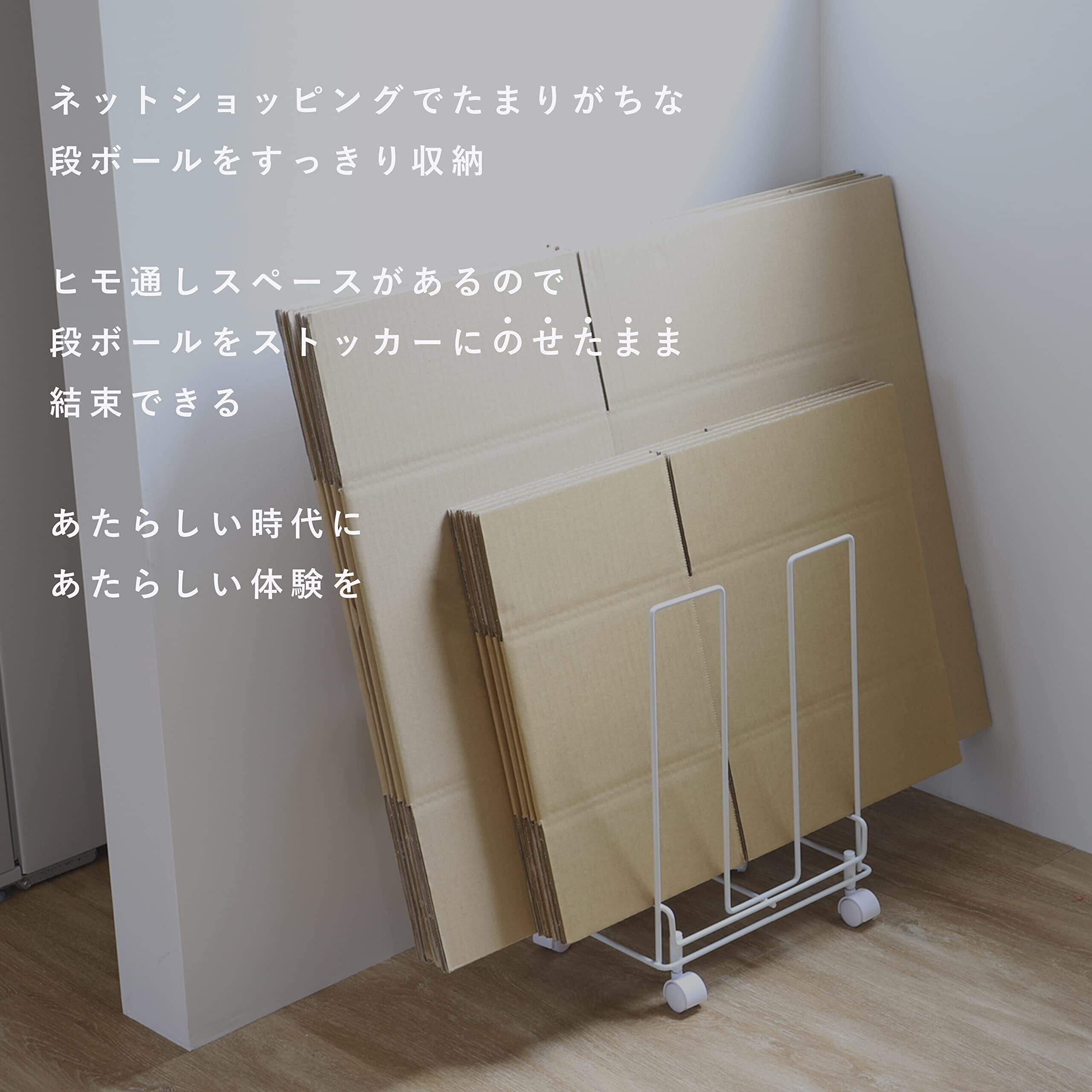 ○かさばるダンボールをスリムに収納。 ○ヒモ通しスペースがあるので、そのまま結束できる。