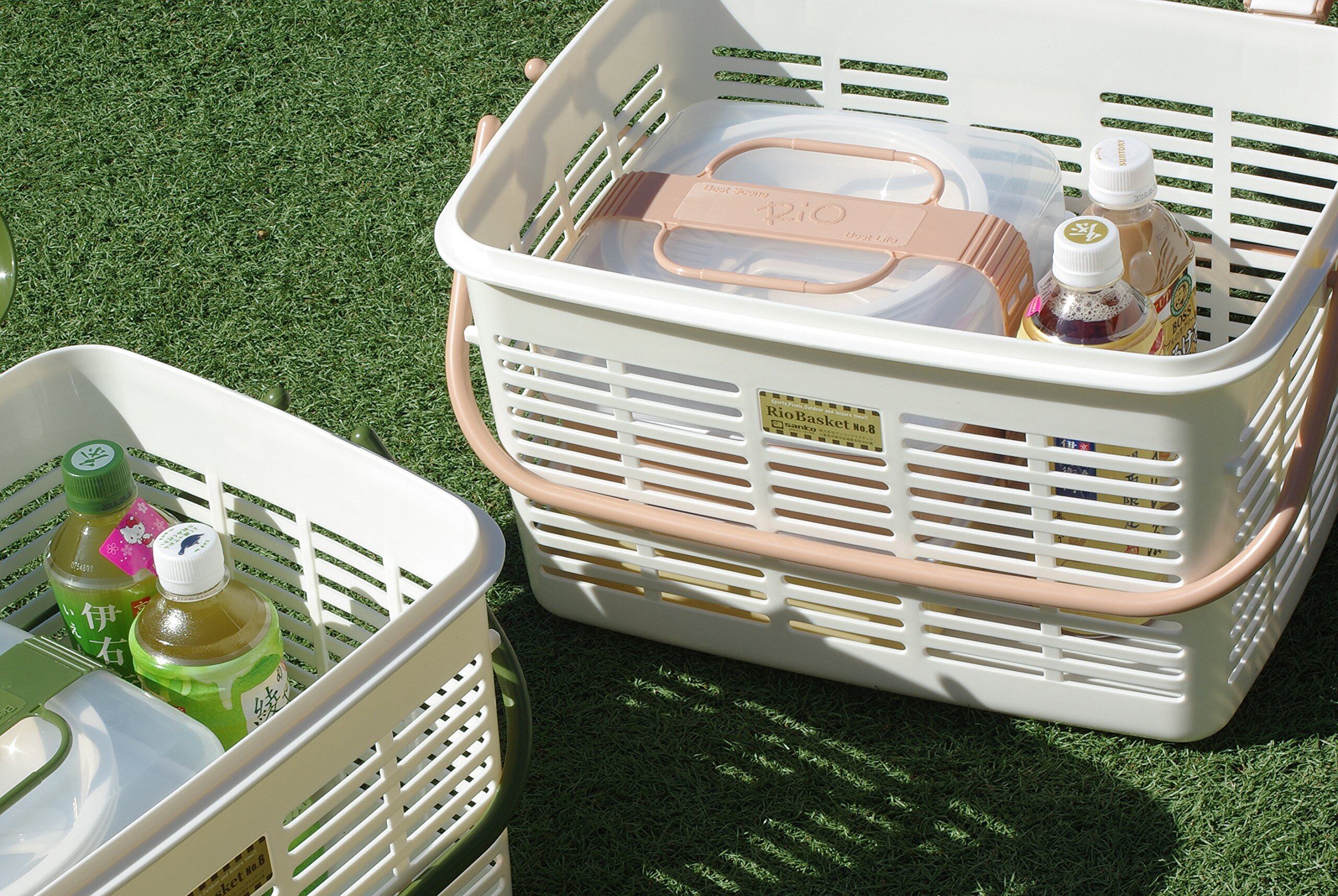 【特価商品】サンコープラスチック ピクニック バスケット リオバスケット No.8 アースベージュ 117182 約幅44.5×奥行33.3×高さ26.5cm