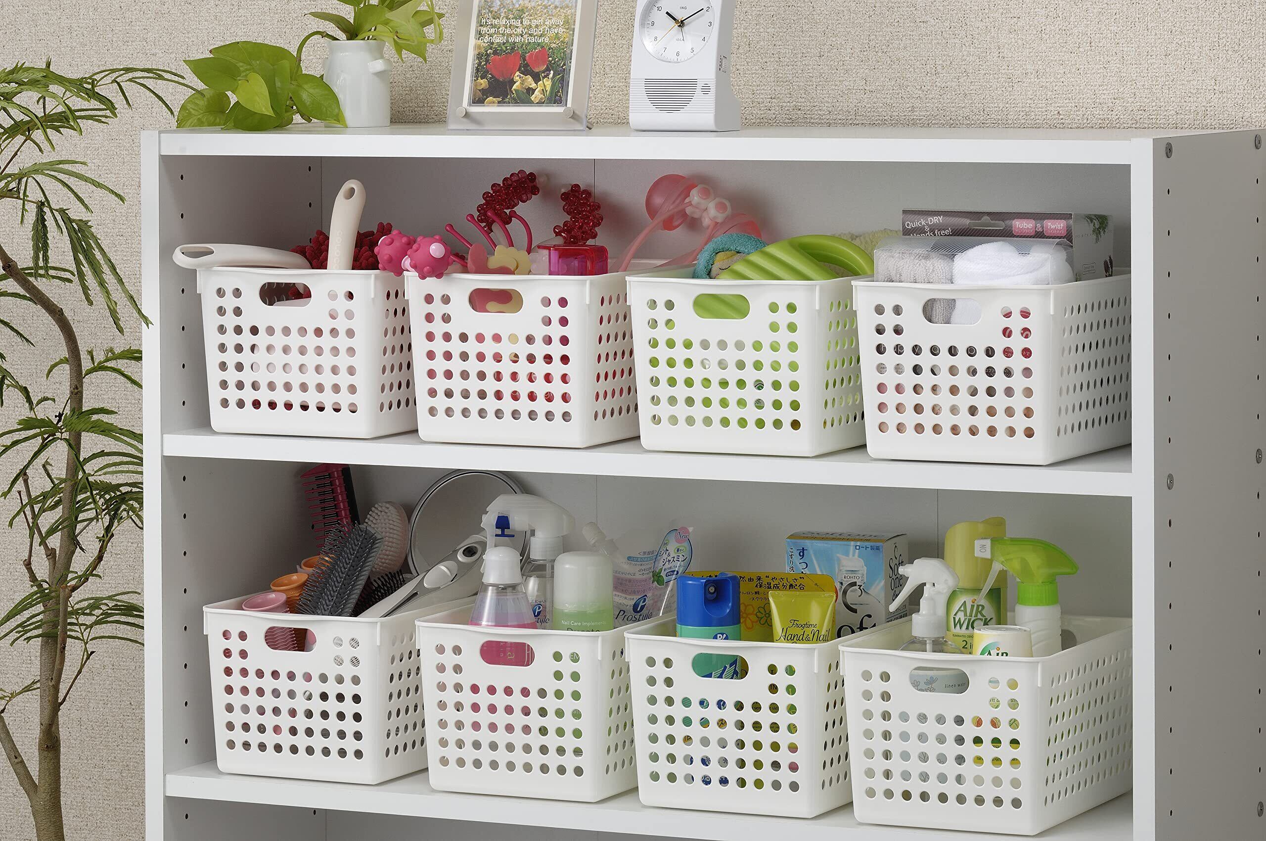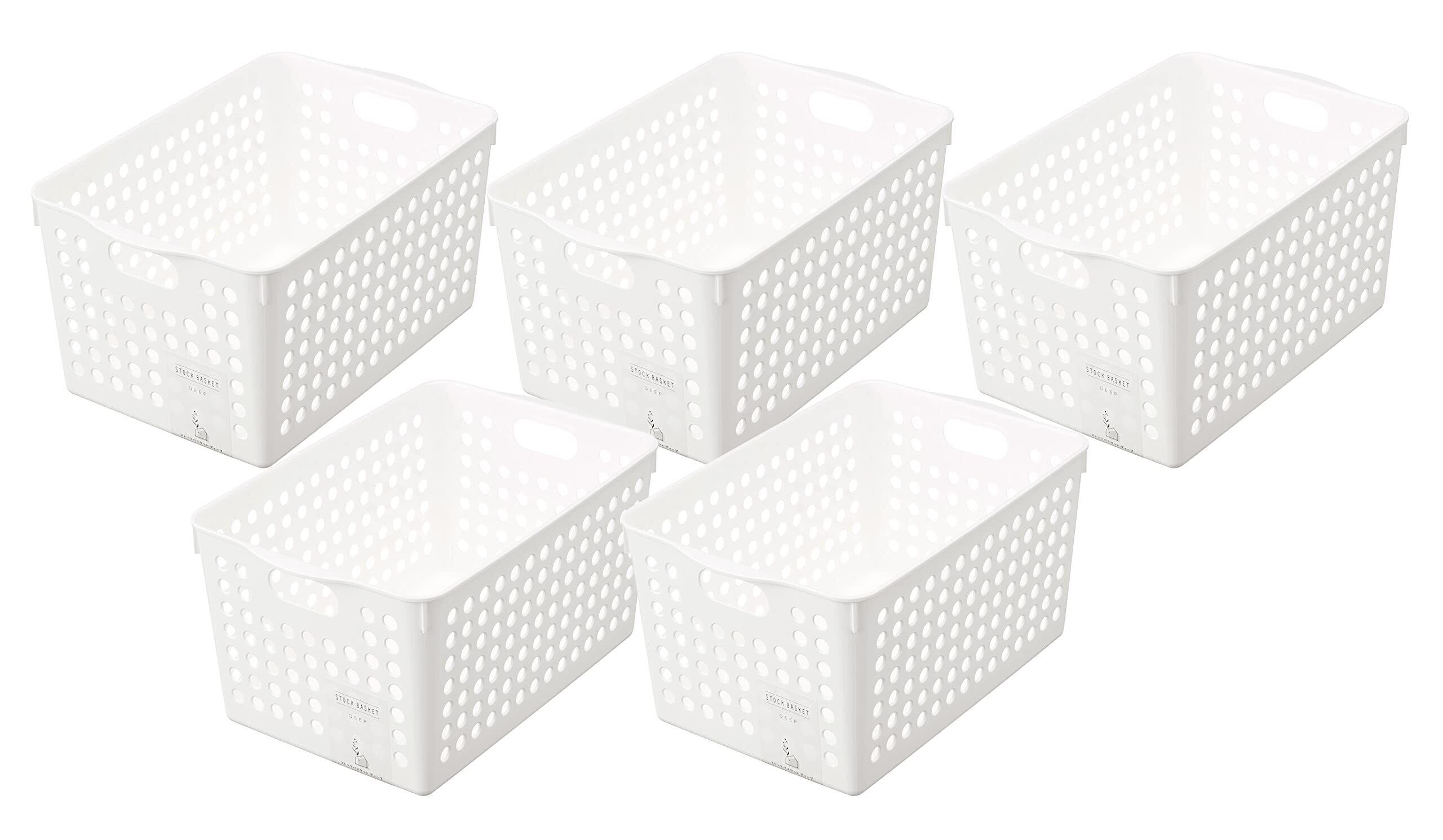 【在庫処分】イノマタ化学 収納バスケット ストックバスケットディープ 5個組 ホワイト 日本製 97804