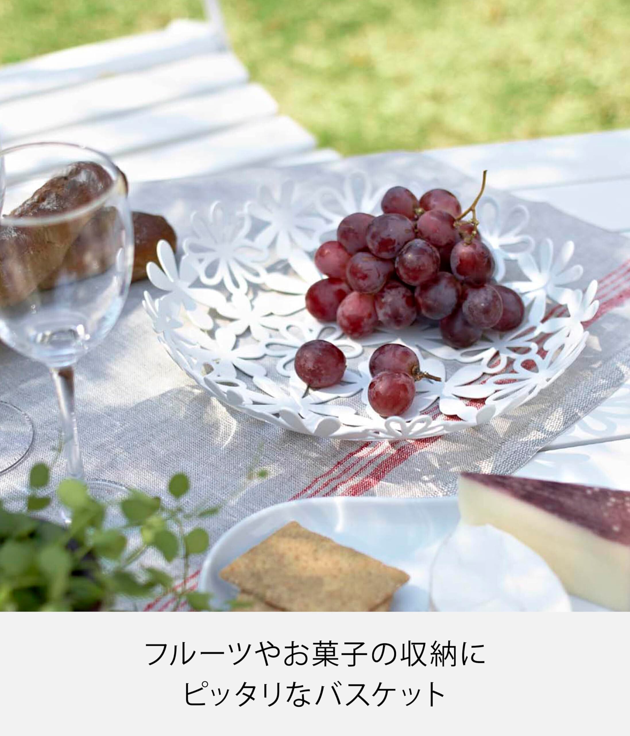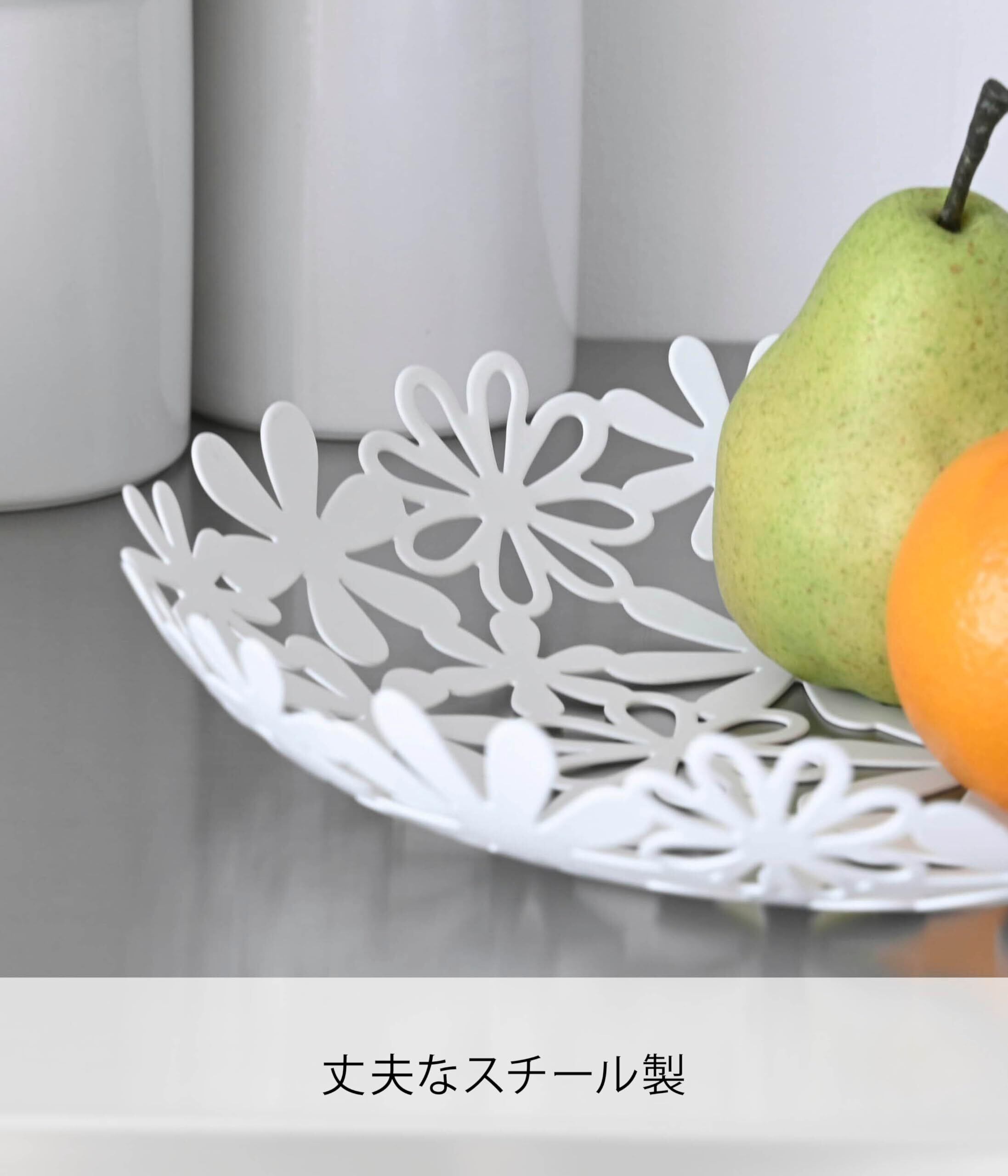 山崎実業(Yamazaki) フラワーバスケット ホワイト 約W25×D25×H5cm フルーツボウル 果物 卓上 6973