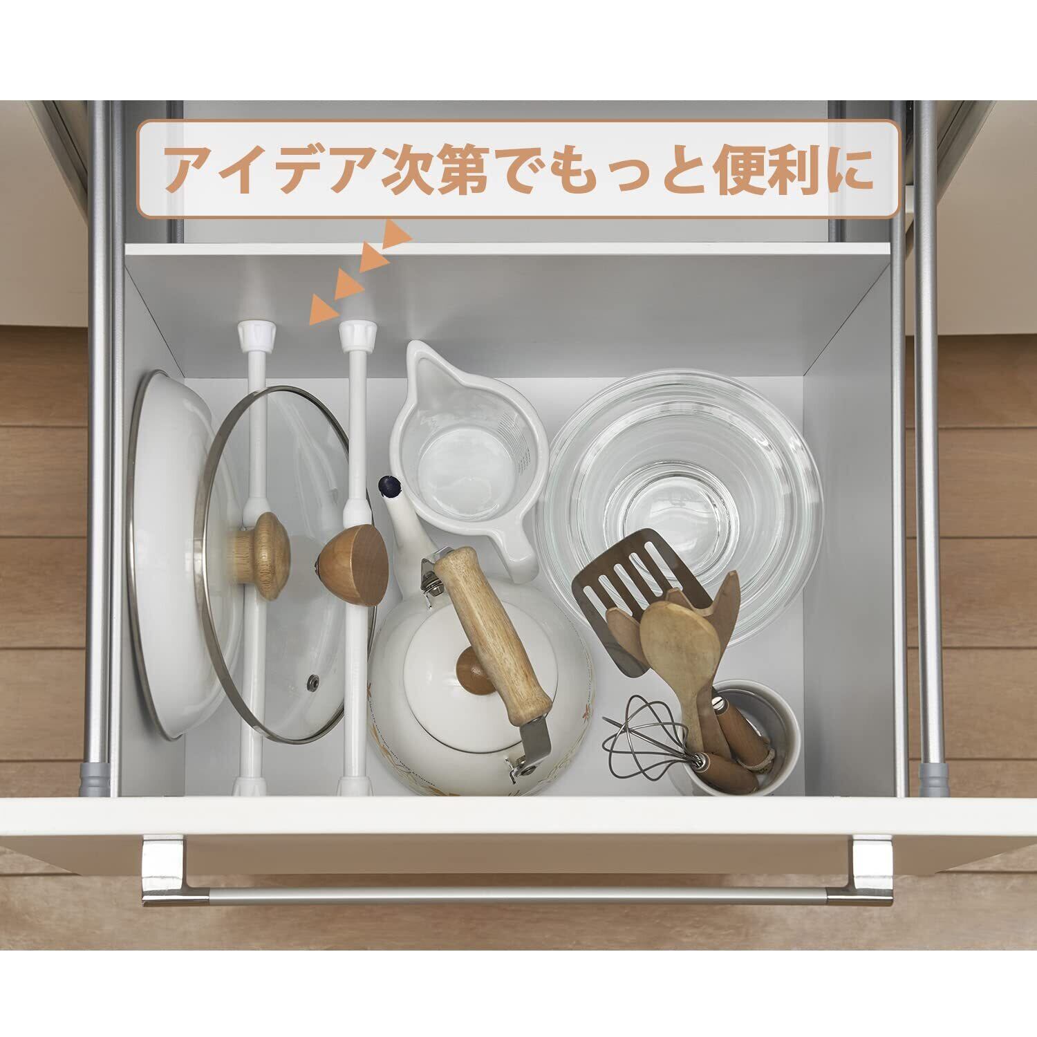 棚や収納庫の空きスペースなど、幅の狭いスペースに設置できるつっぱり棒。簡単に取付けられて、整理力・収納力アップ。
