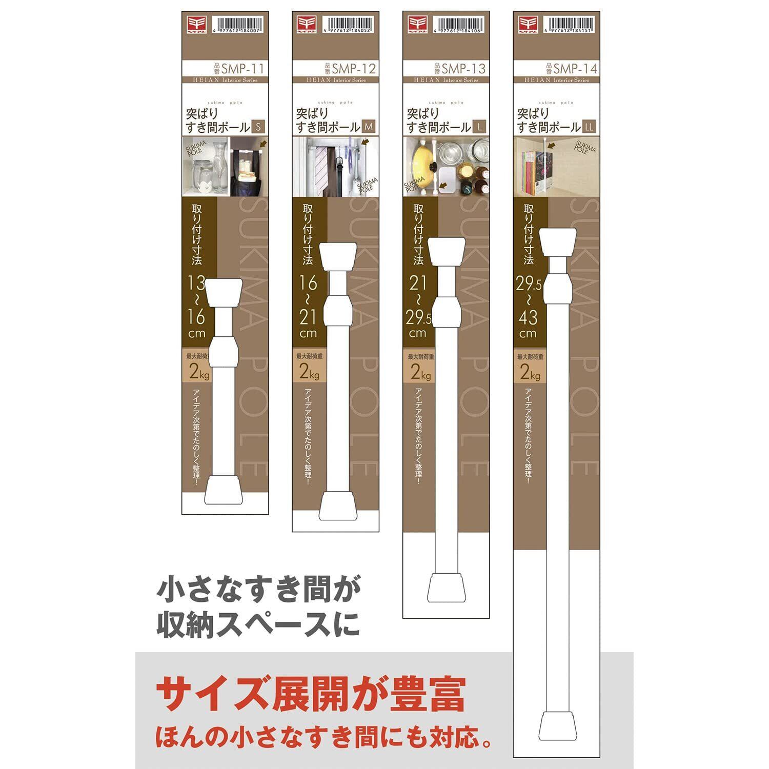 平安伸銅工業 突っ張り棒 隙間収納 ホワイト 耐荷重2kg 幅21~29.5cm パイプ直径1.3・1.0cm SMP-13