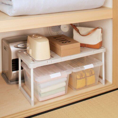 「伸縮押入れ整理棚SOR-370*2(2個セット)グレー」は、押入れのサイズに合わせて伸縮できるスライド棚です。棚の幅を72-92cmまで調整できます