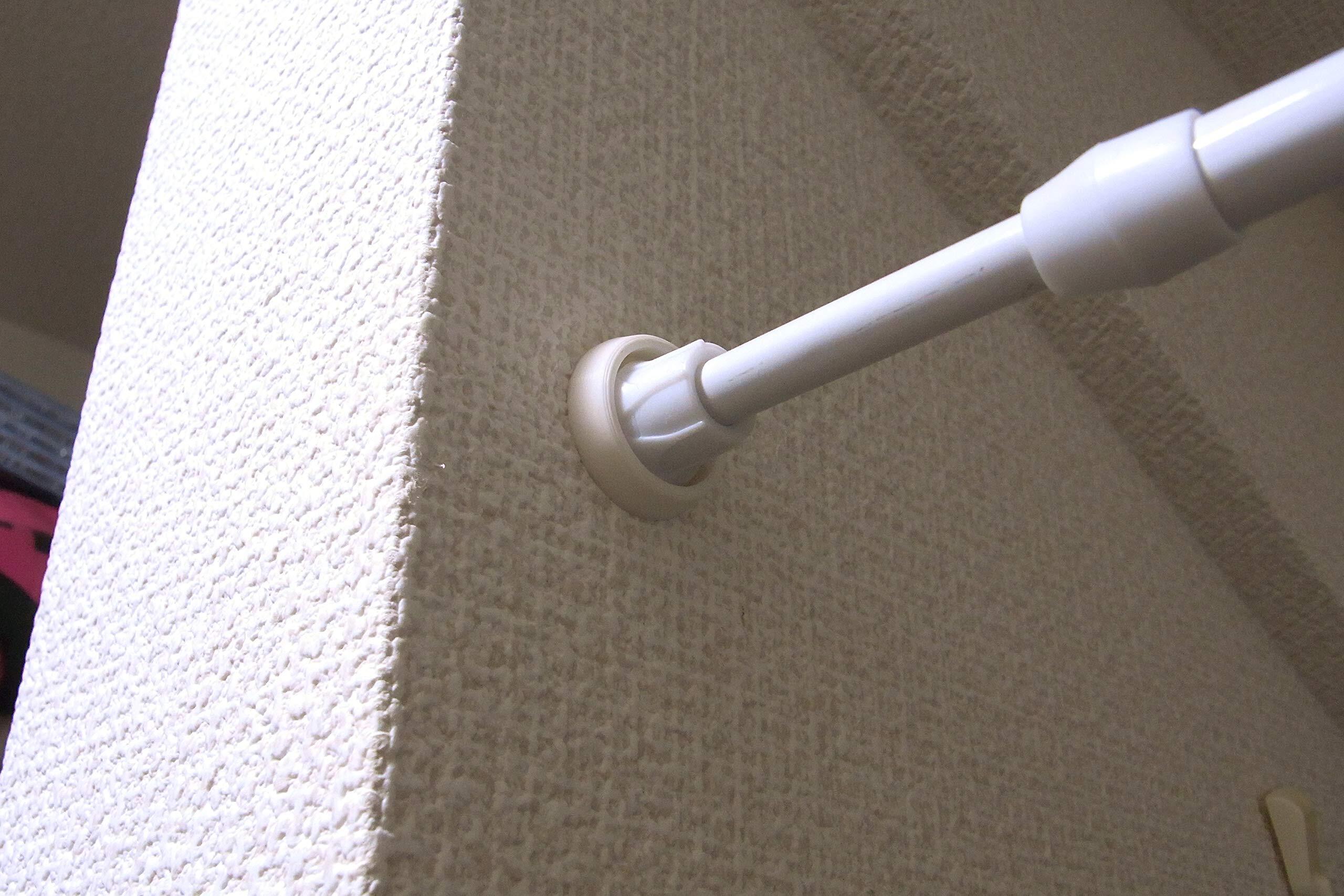 つっぱり棒を画びょうを使ってズリ落ち防止!(壁に穴は1個だけ!)