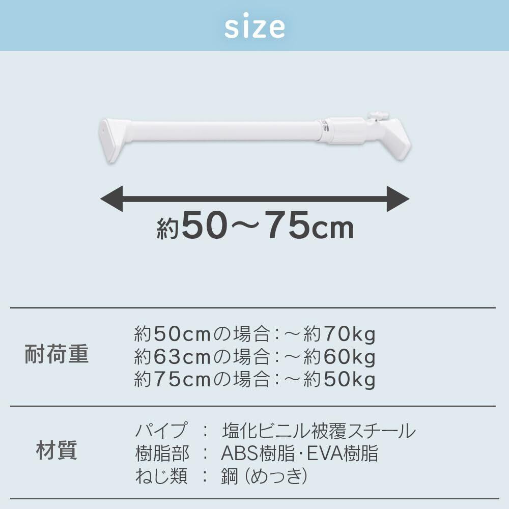 アイリスオーヤマ 強力伸縮棒 最大耐荷重70㎏ 伸縮幅50-75㎝ 3カラー 部屋干し つっぱり棒 伸縮つっぱり棒 3カラー H-NPJ-75R ブラック