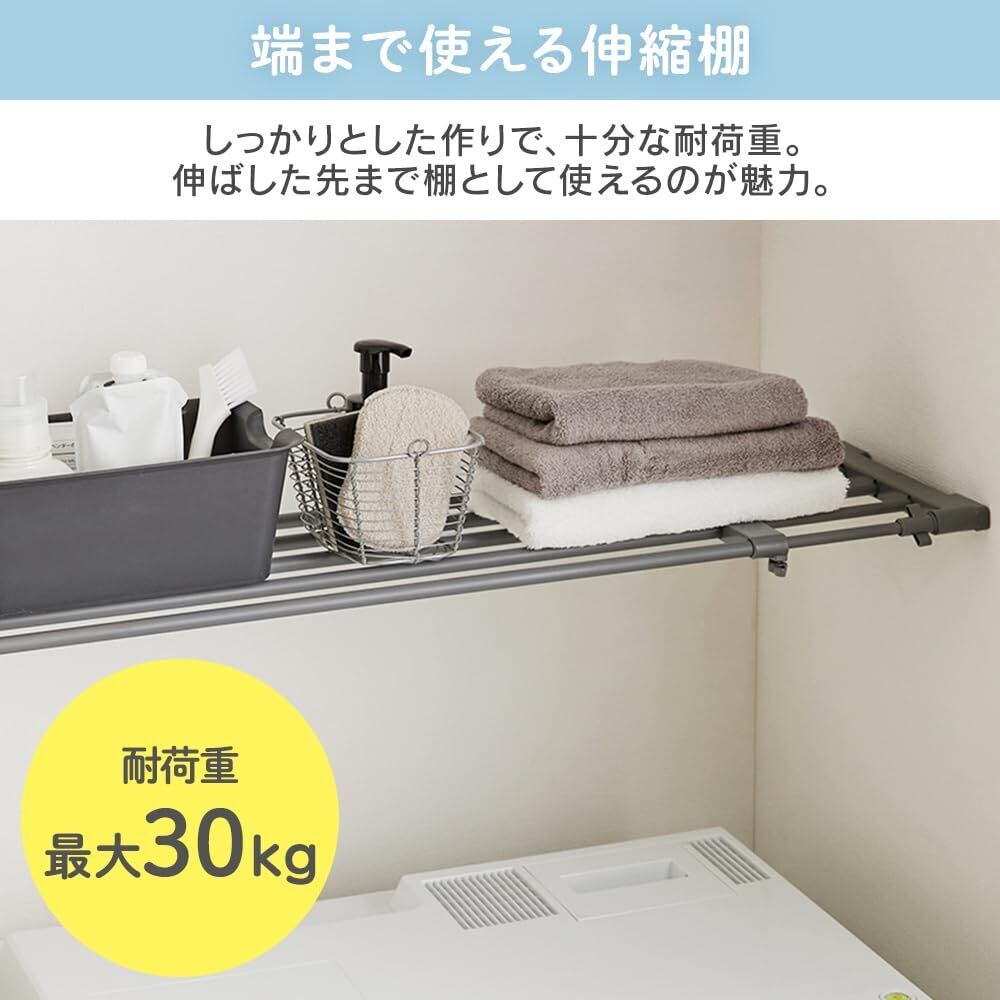 【端まで使える伸縮棚】しっかりした作りで十分な耐荷重。伸ばした先まで棚として使えるのが魅力。