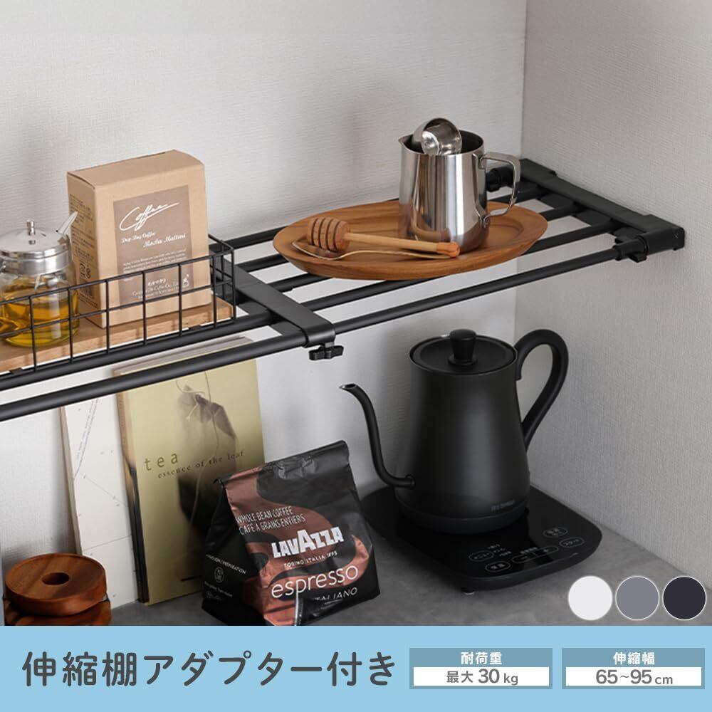 【人気商品】アイリスオーヤマ 伸縮棚 アダプター付き 耐荷重30㎏ 65-95㎝ H-J-NST65R ブラック