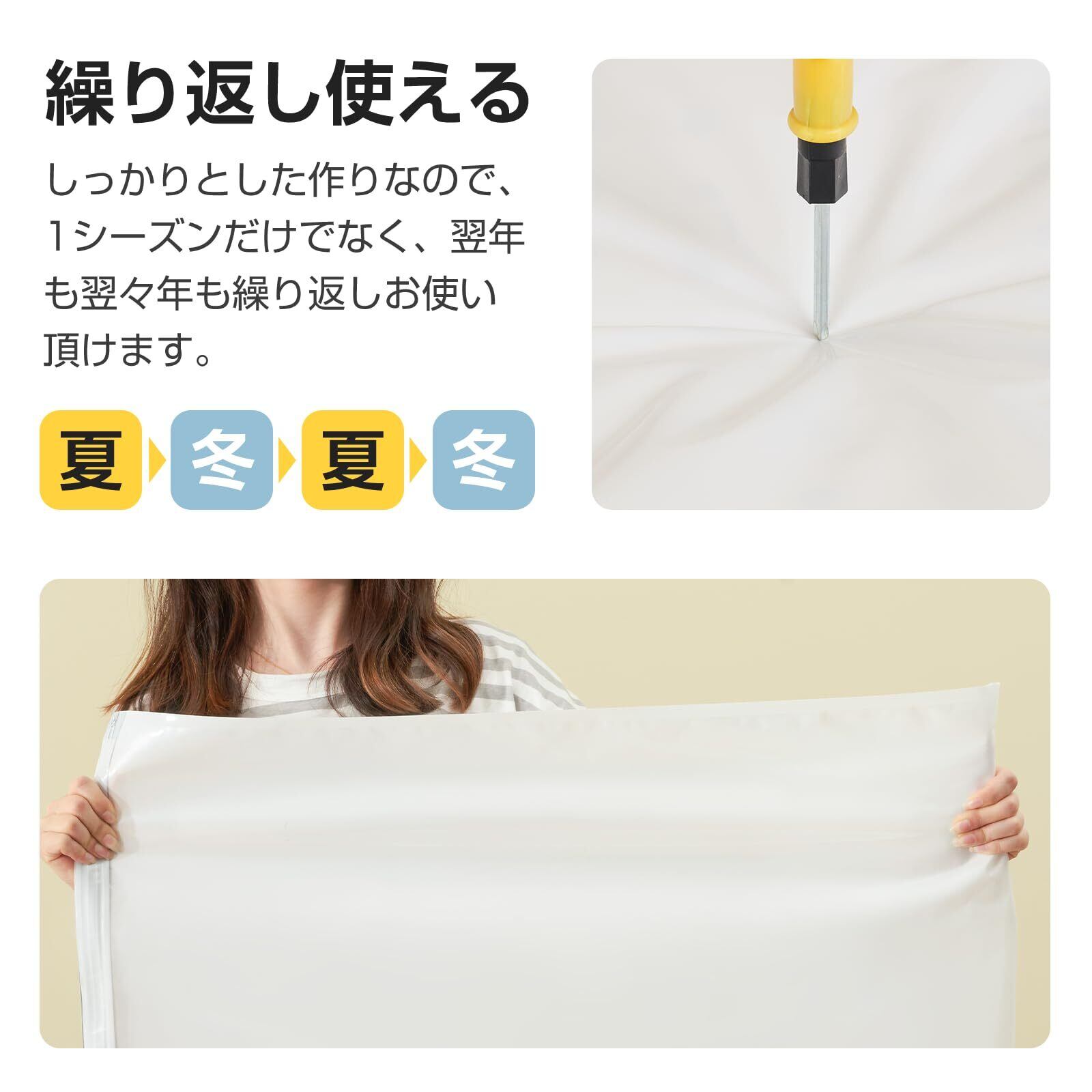 【ホコリと湿気を防ぎます】このマットレス圧縮袋は高密度素材を使用し、外部からのホコリや湿気を効果的に遮断します。マットレスを清潔で乾燥した状態に保ち、耐用年数を延ばします。虫によるマットレスの損傷や汚れを防ぎます。